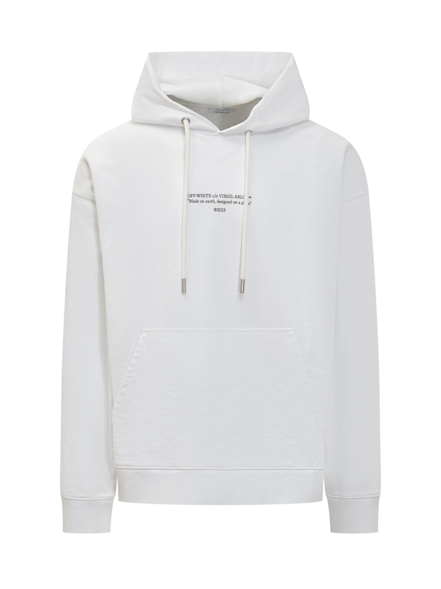 White cotton hoodie by Off-White featuring kangaroo pocket and minimal text print on chest.