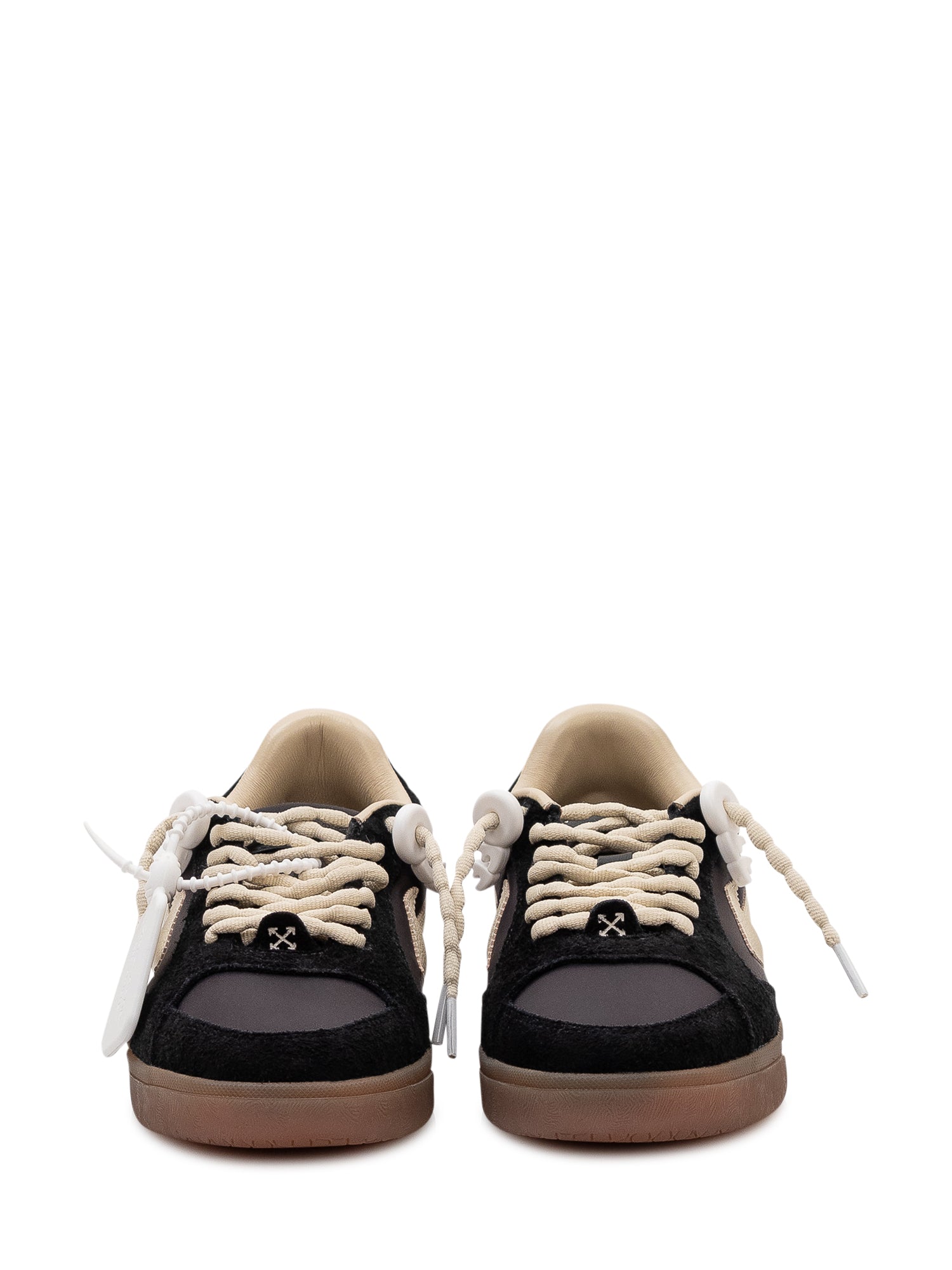 Low top sneakers with smooth panels and suede inserts, lace up closure and thick rubber sole. Arrow side motif and applied tag detail.