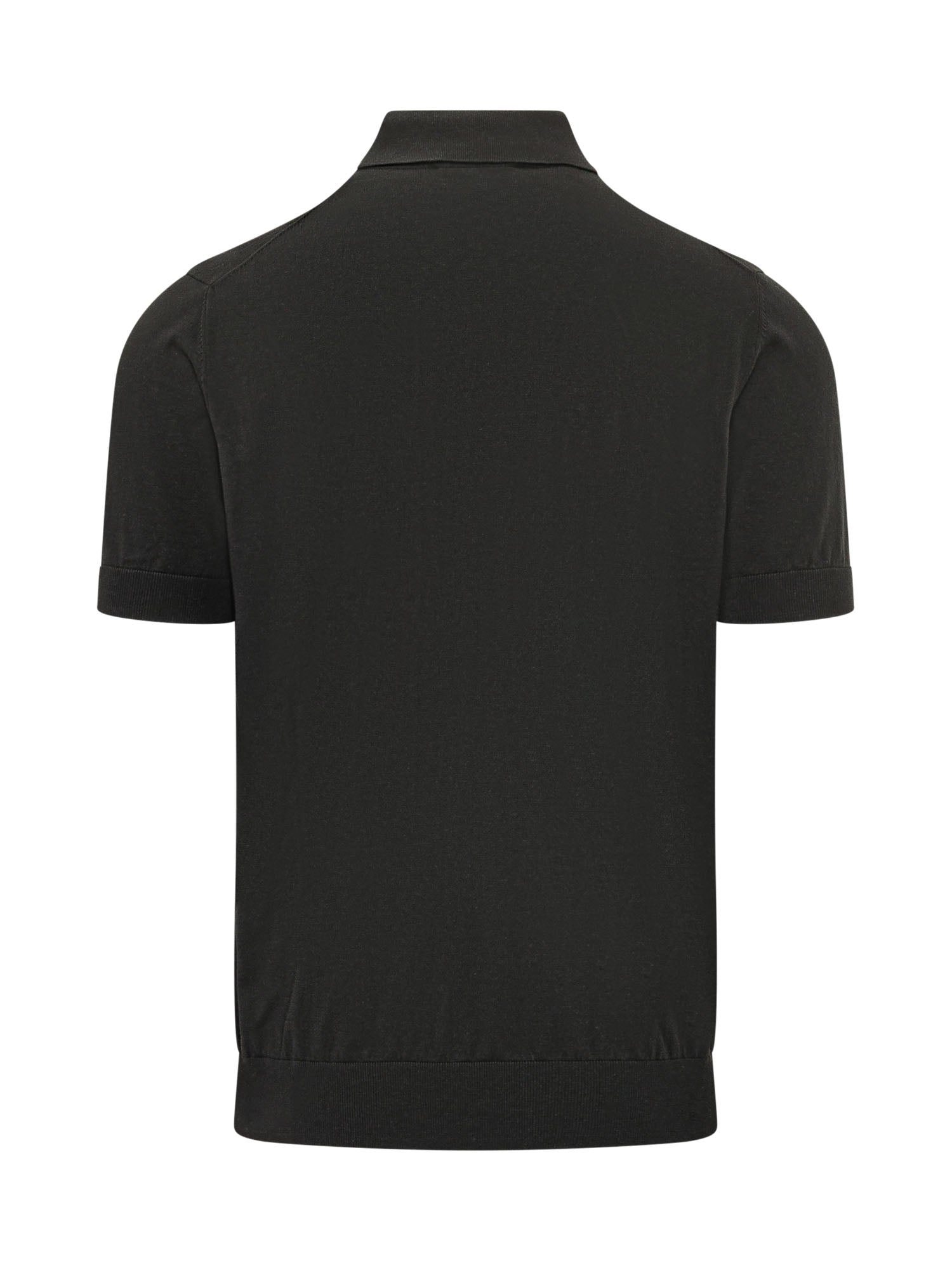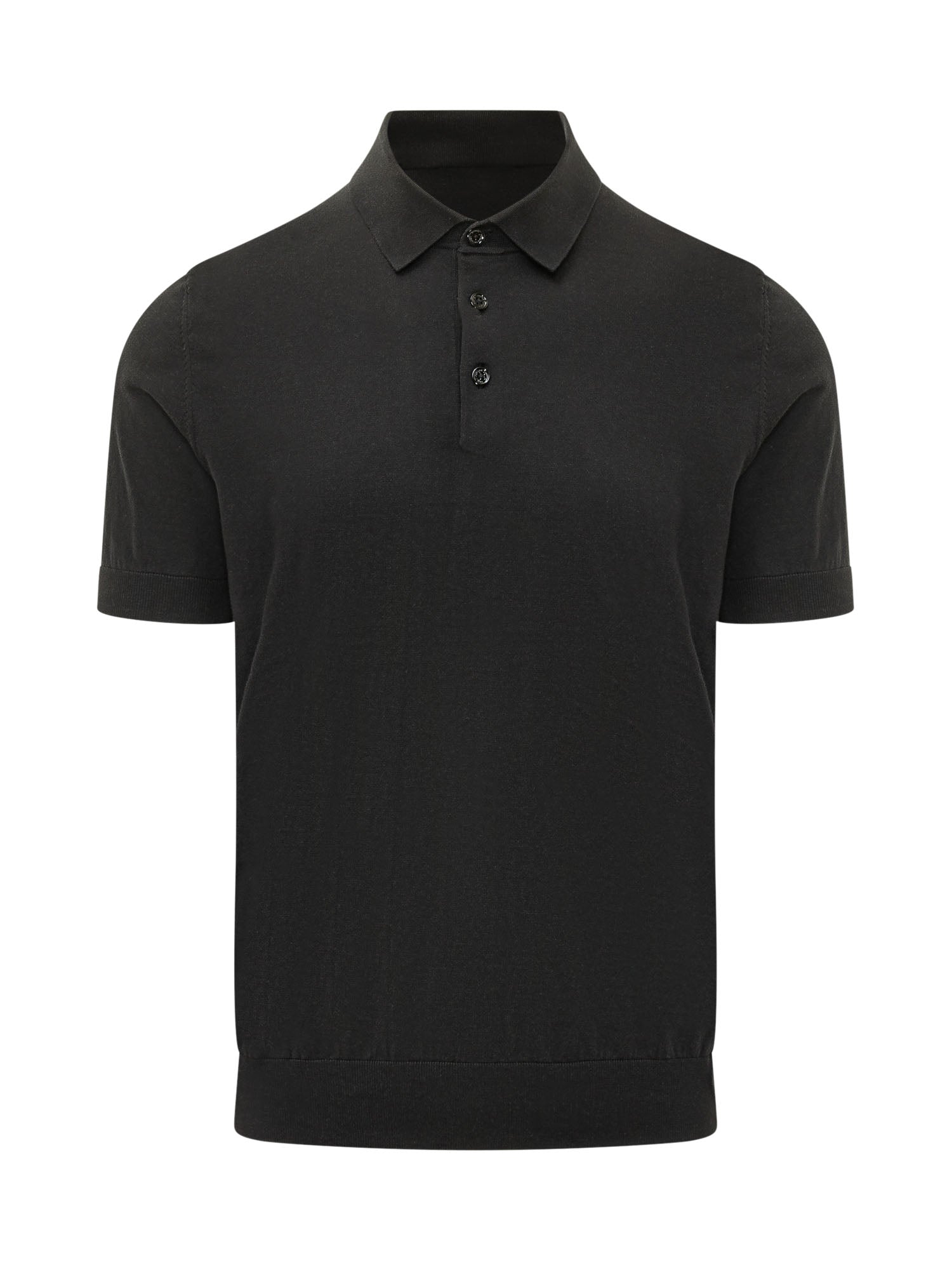 Short sleeve polo with classic collar, front button closure, ribbed hem and sleeve ends.