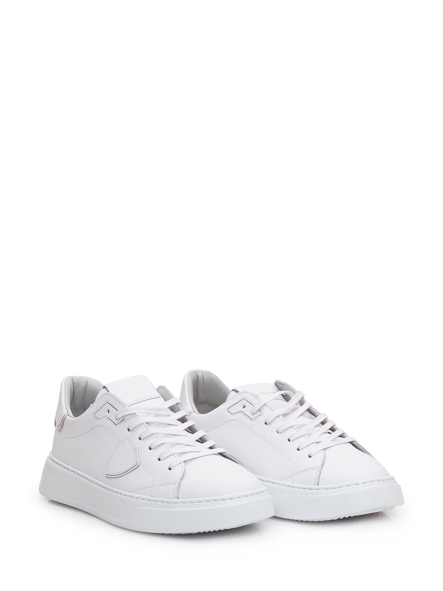 White leather sneaker. Closure with laces. Logo on tongue and heel. Side leather shield.