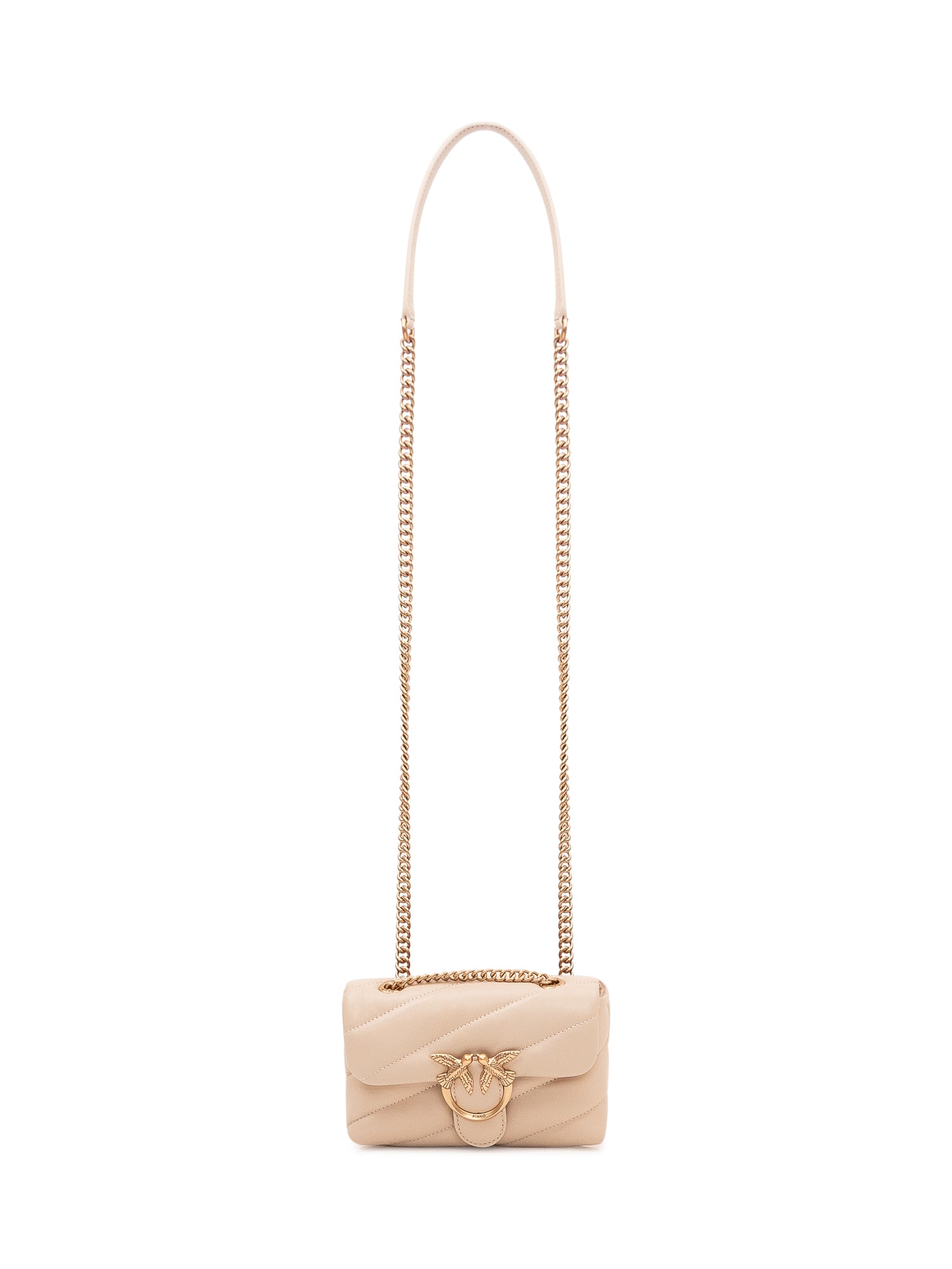 Shoulder bag with front flap, chain strap and metal front closure detail, padded design and compact structure