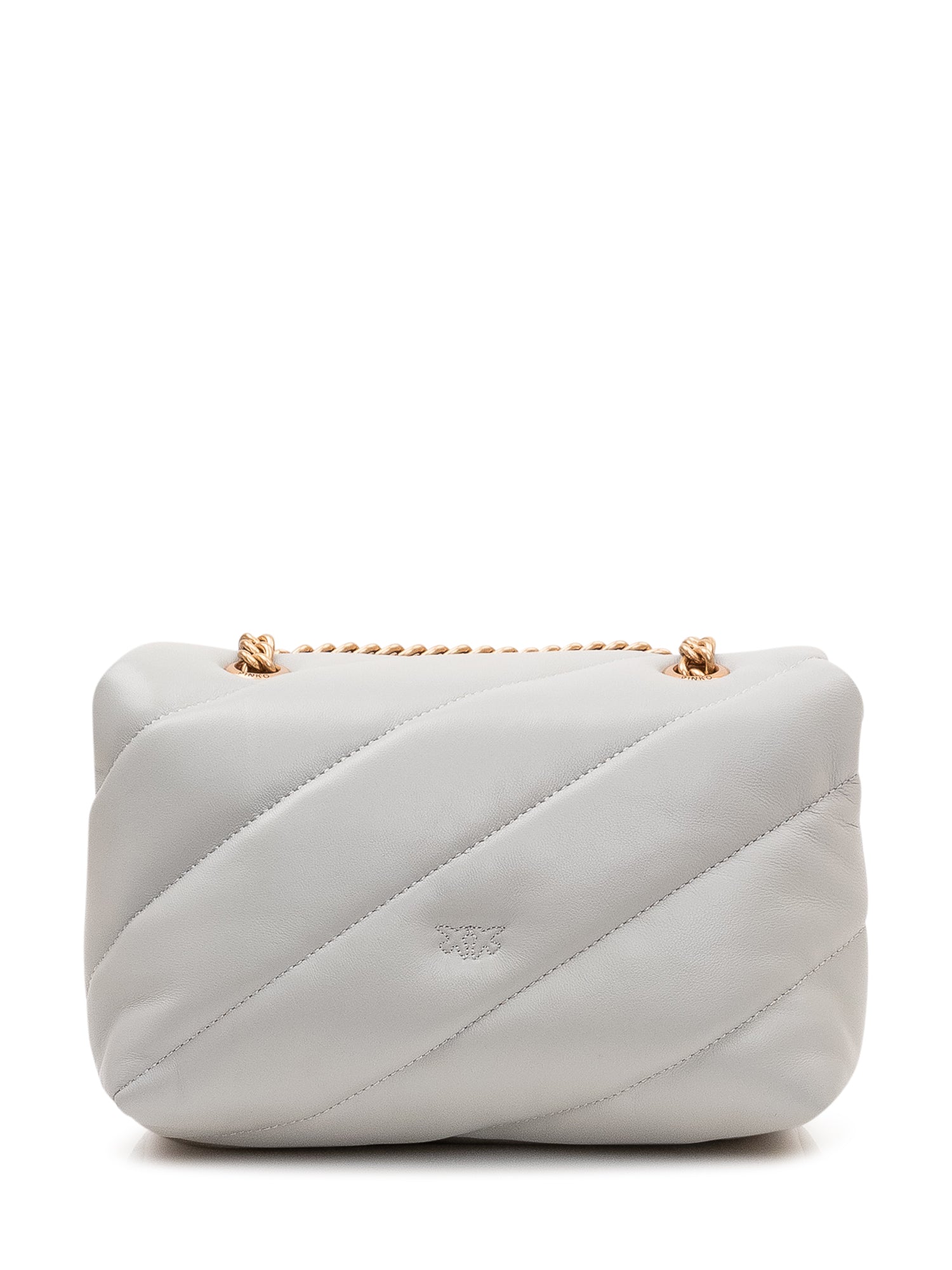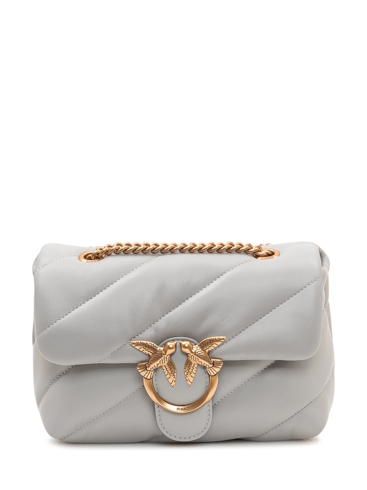 Shoulder bag with flap and front decorative closure, quilted pattern and chain strap, structured and compact design