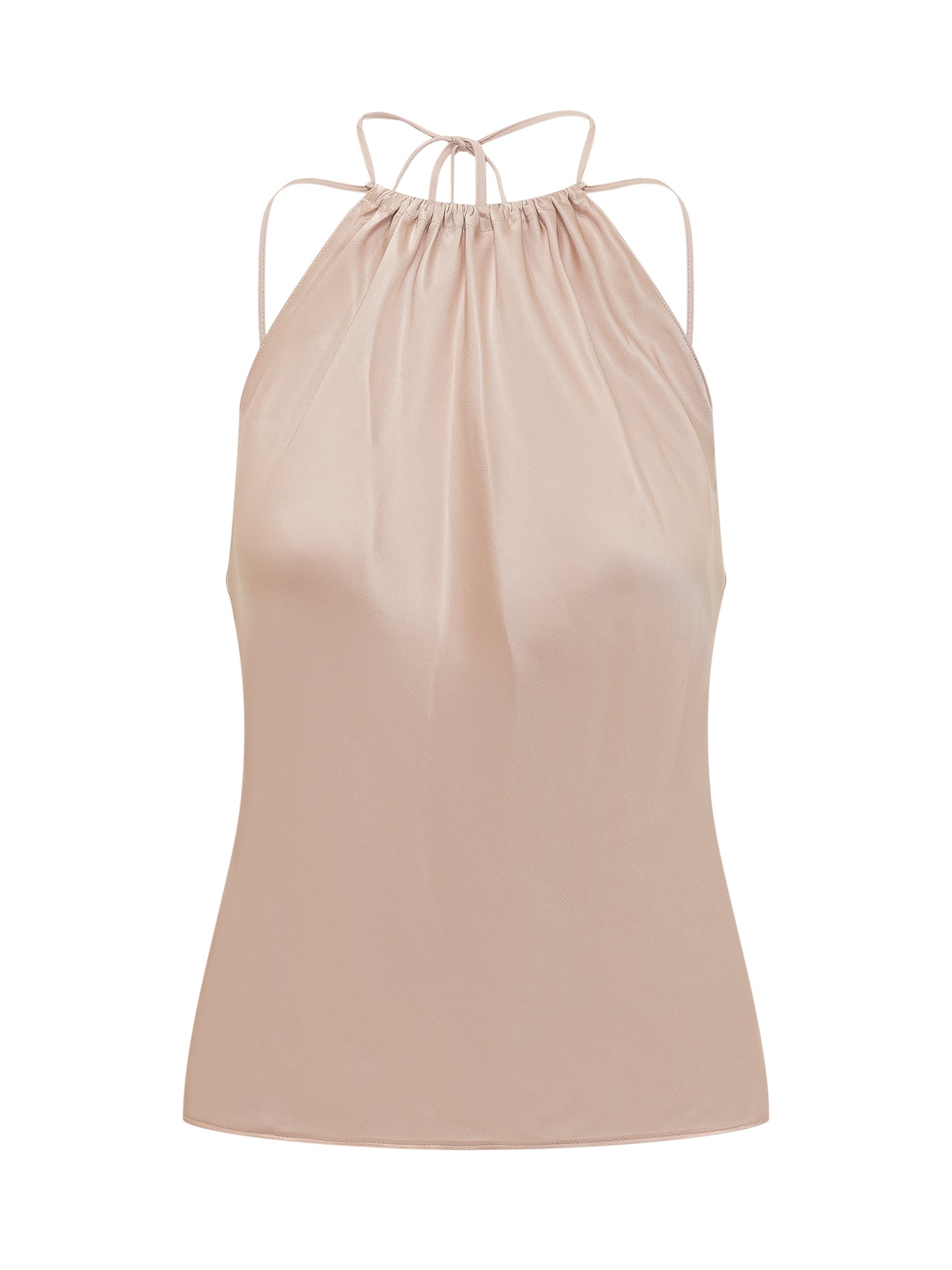 Womens halter neck top with tie strings at the neck, fluid and lightweight fit, relaxed silhouette.
