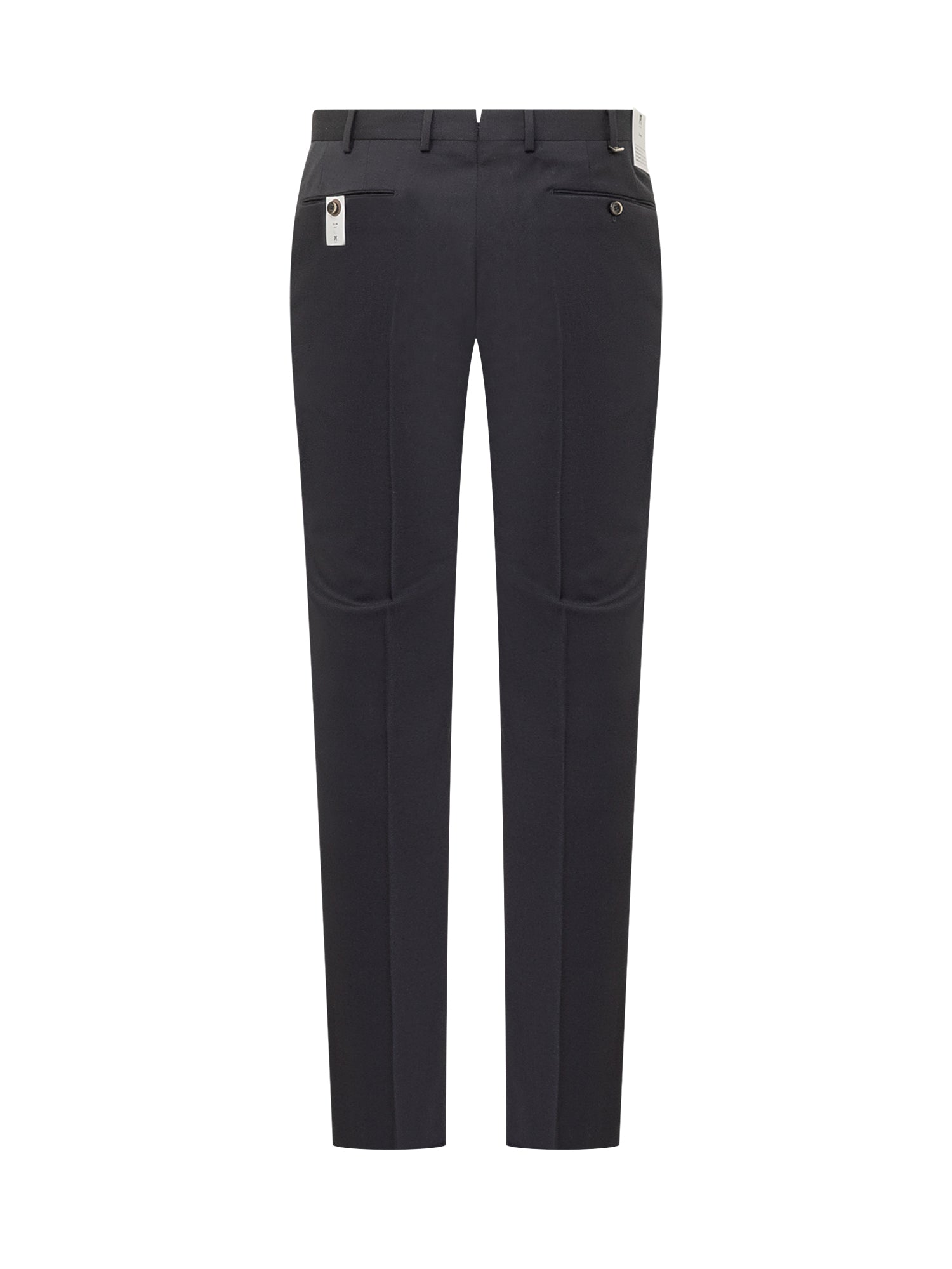 Button and zip closure. Slim fit. Two side pockets. Two flush pockets with buttons on the back.