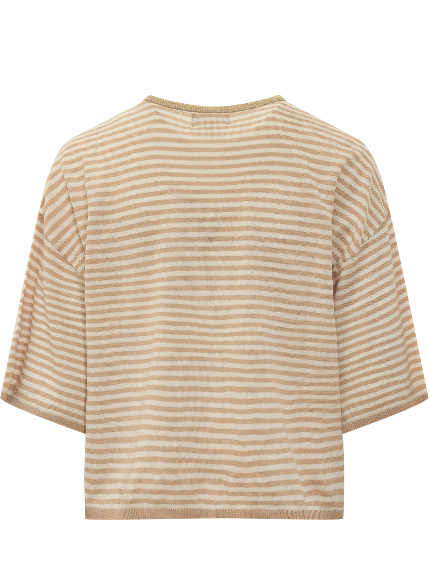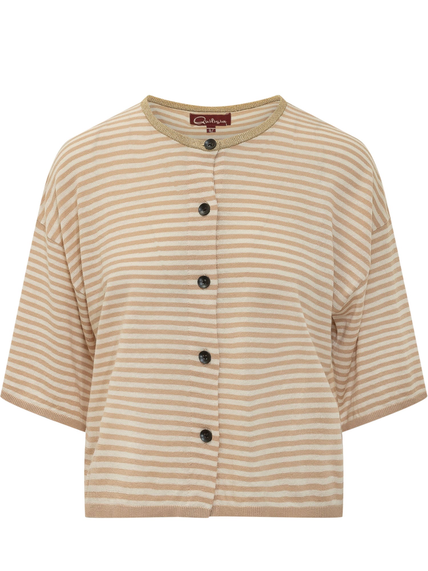 Short-sleeve cardigan with all-over stripe pattern, front button closure and contrast collar