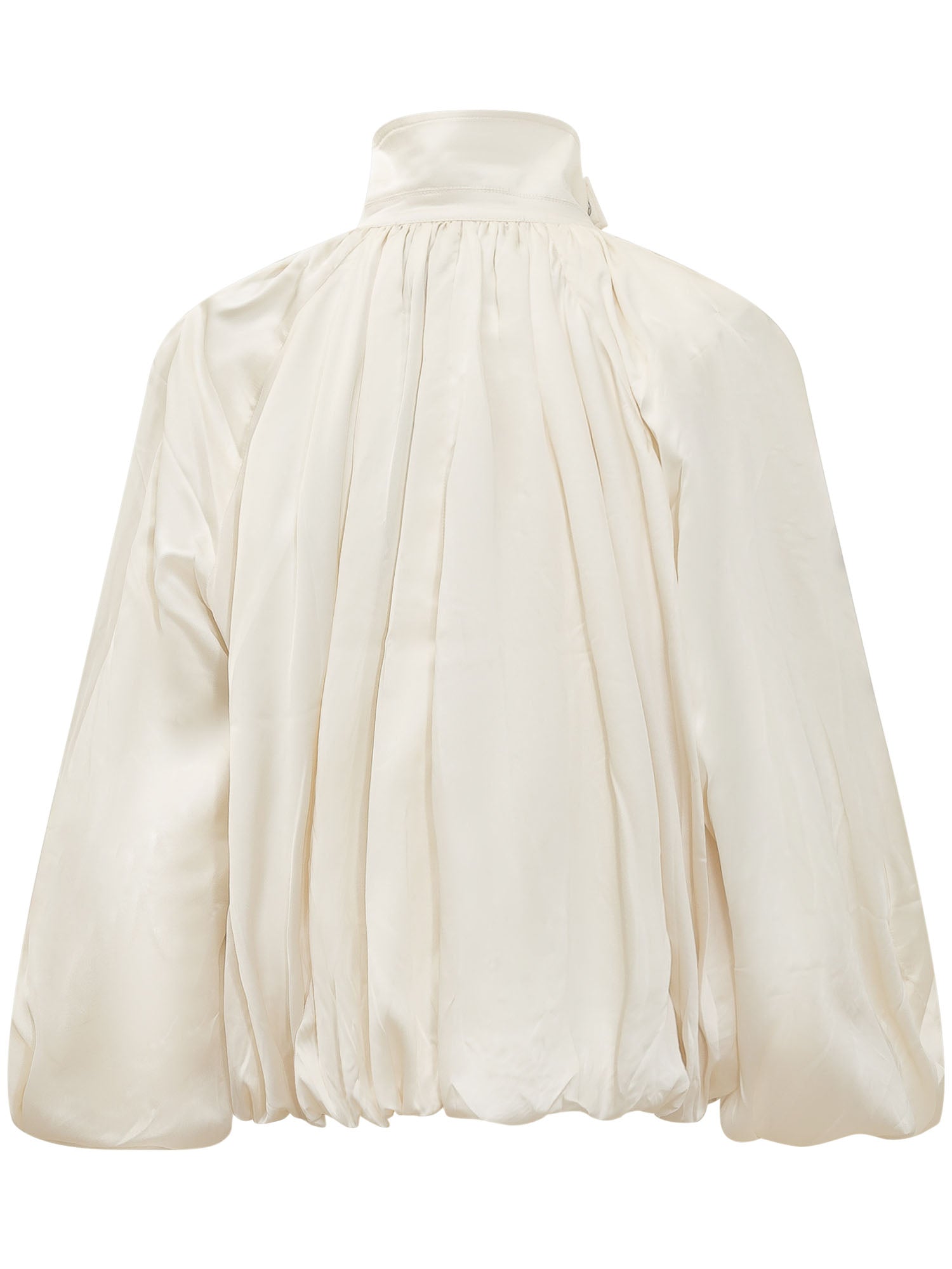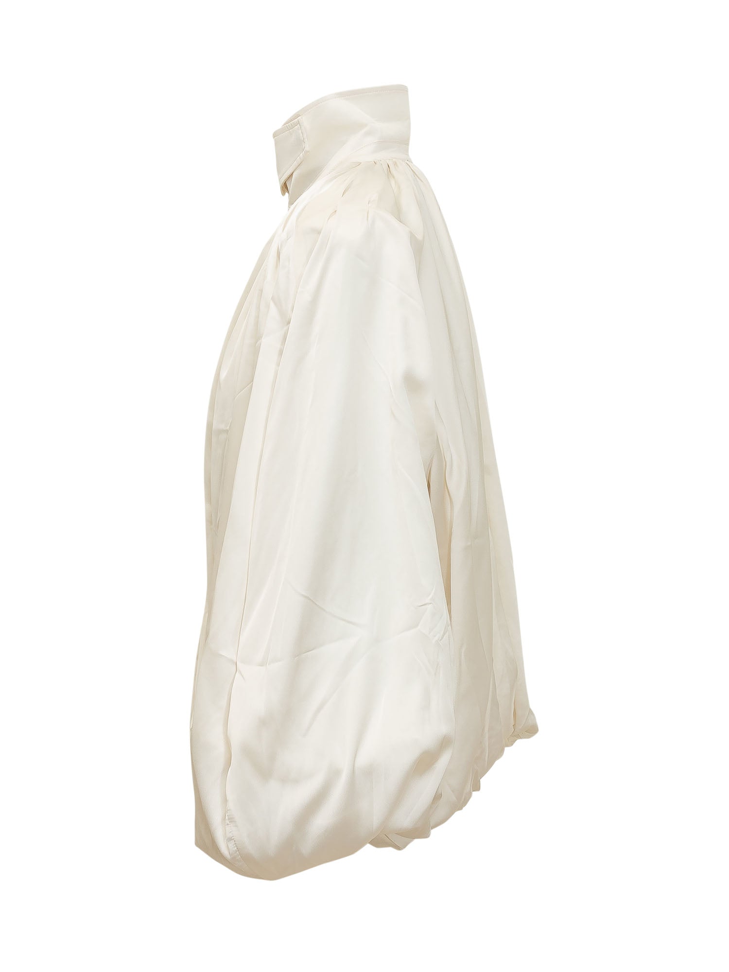 Shirt with high neck, hidden closure and wide sleeves