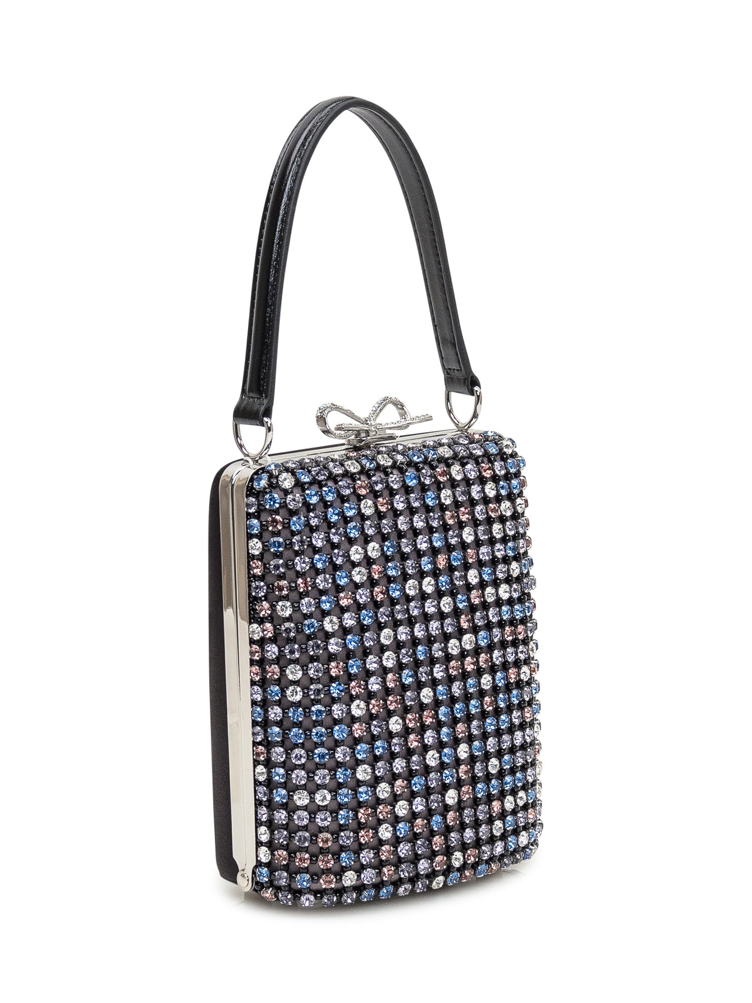 Mini bag embellished with all-over crystals and short handle. Jewel-like design for special occasions.