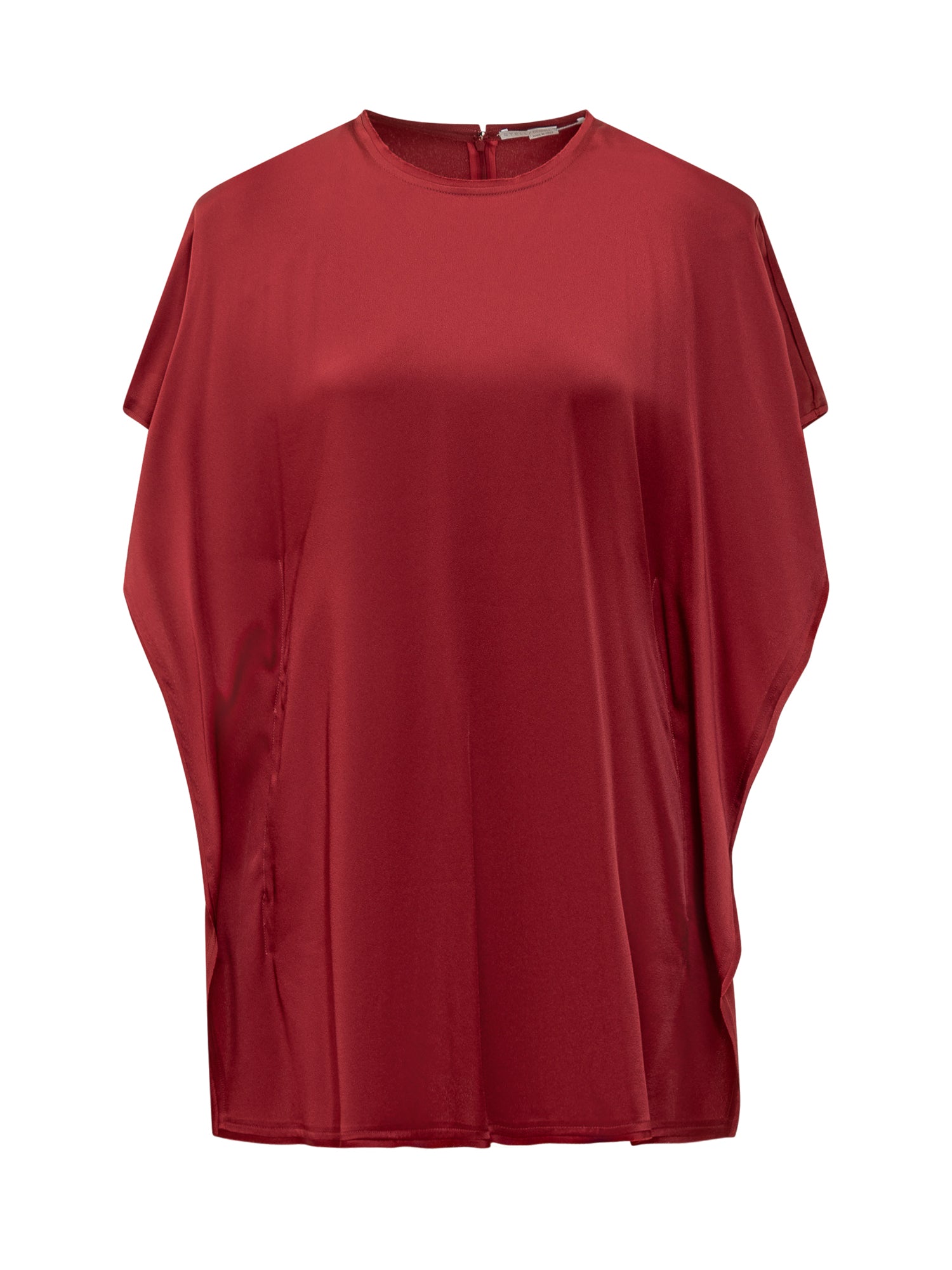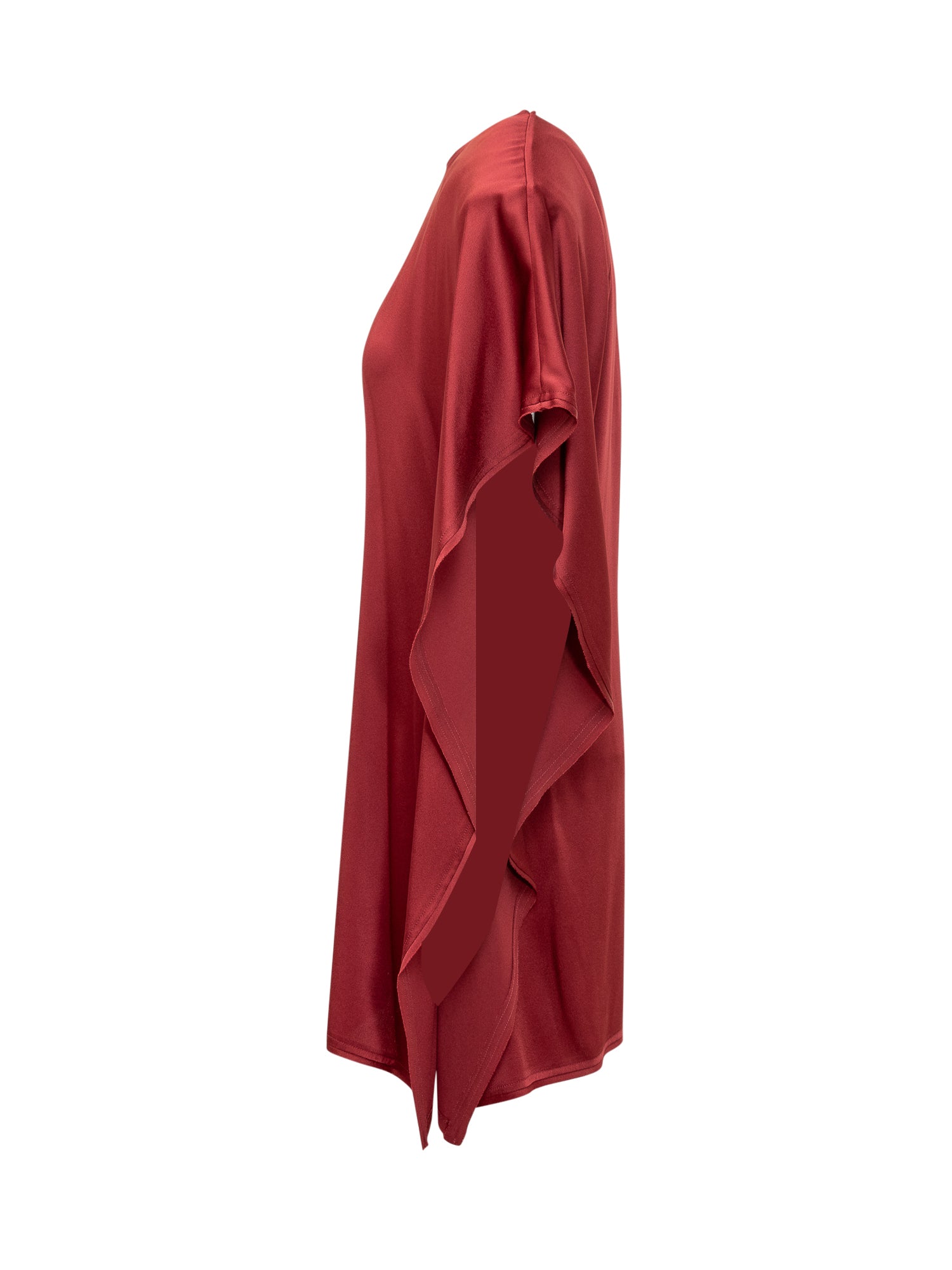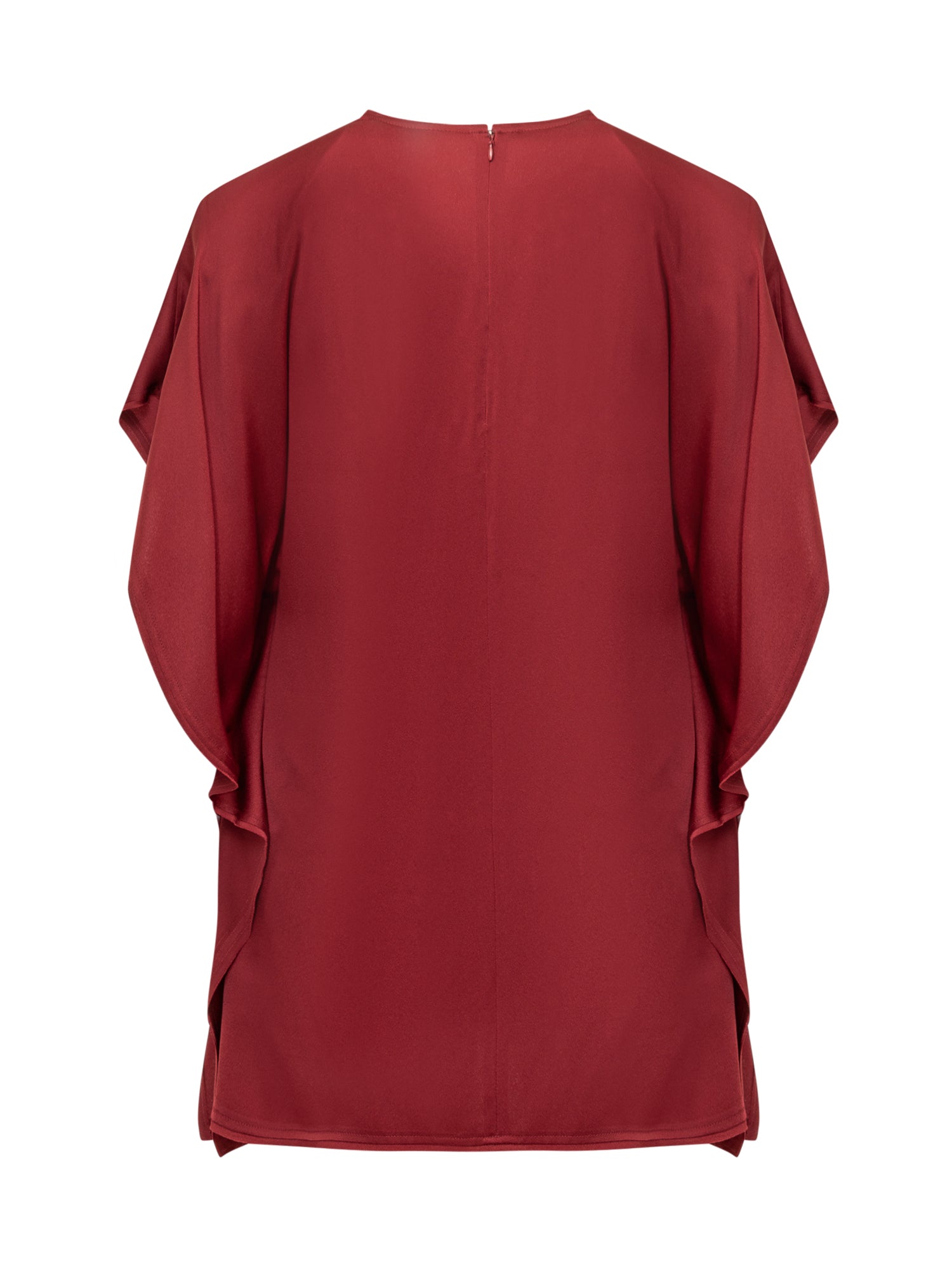 Red short dress. Round neck. Short sleeves with drape. Zip closure on the back.