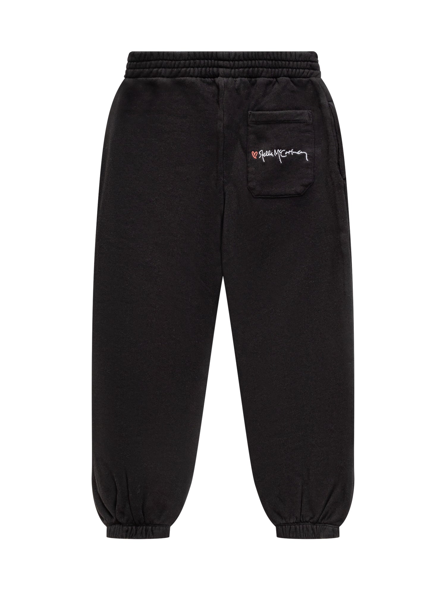 Stella McCartney jogger pants in organic black cotton with elastic waistband and cuffs.