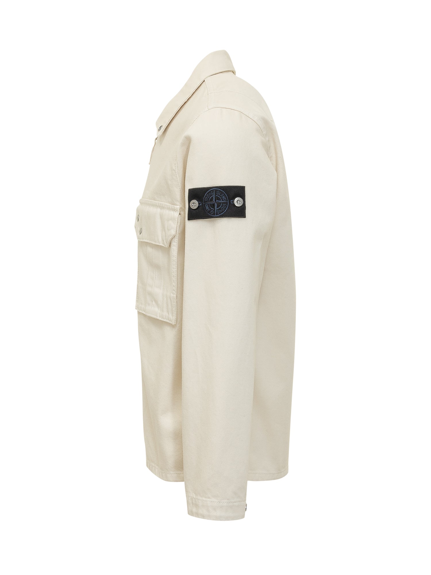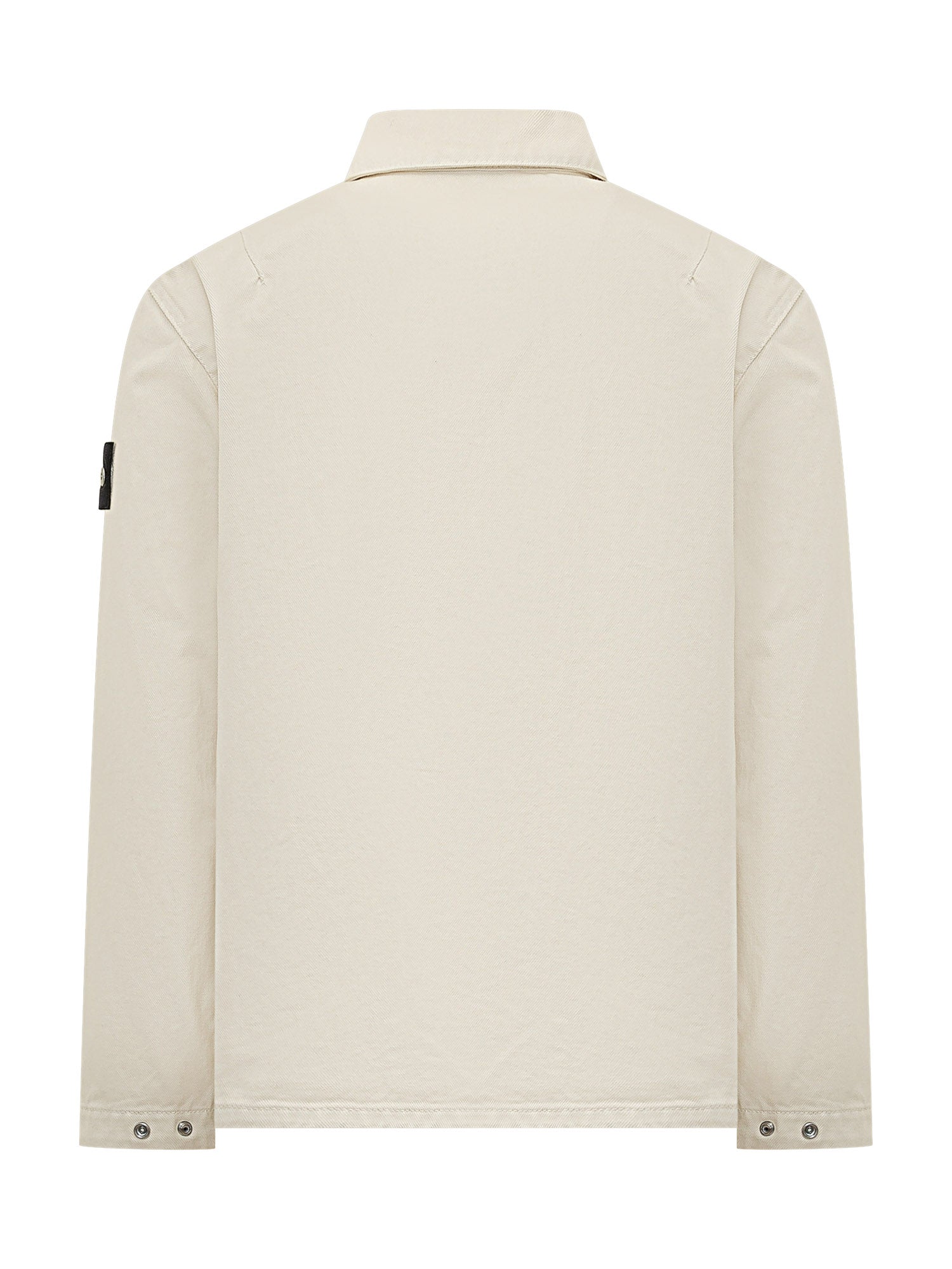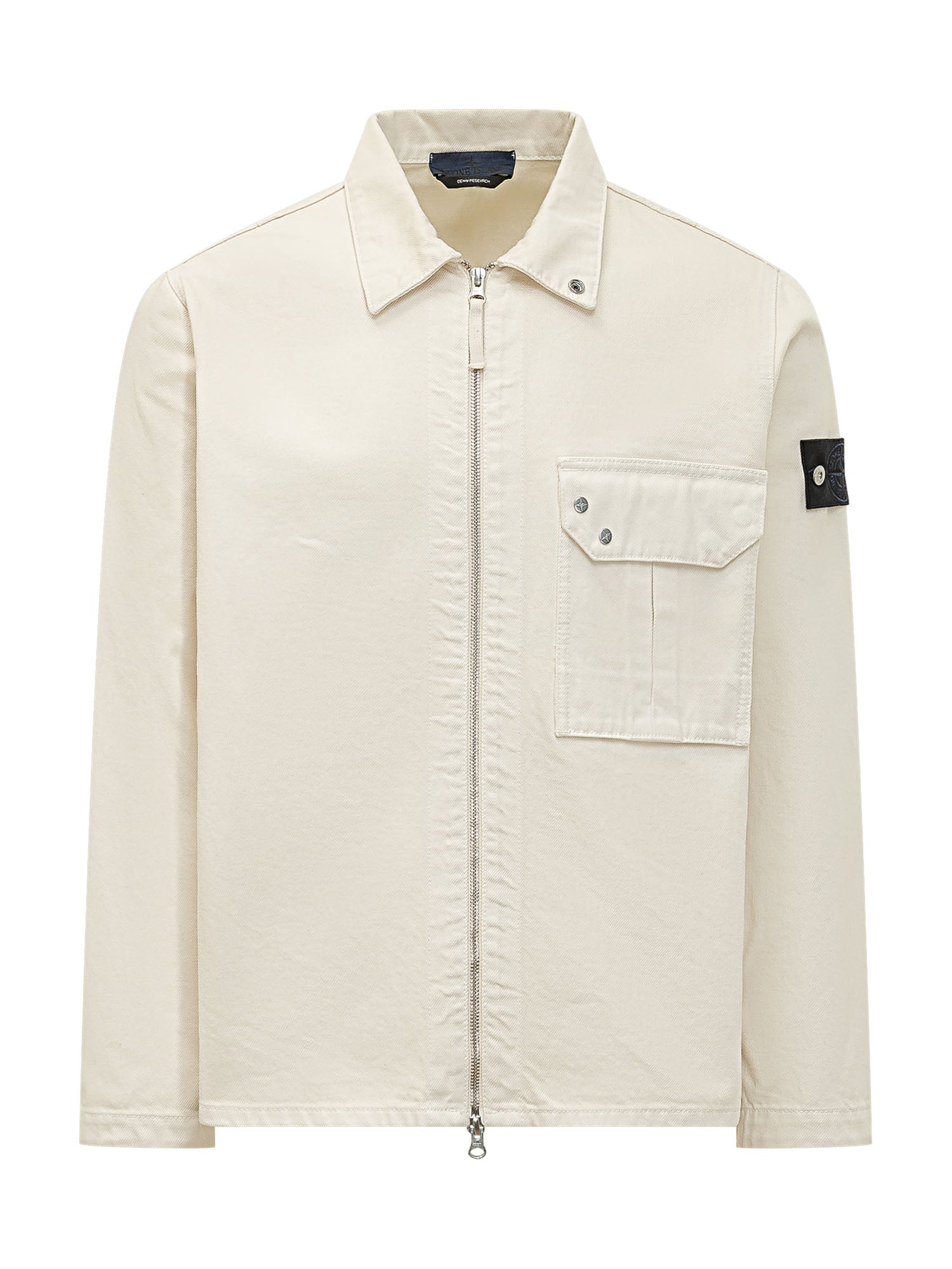 Long sleeve shirt with classic collar and front zip closure. Features patch chest pocket with flap and buttons and logo patch on the sleeve. Clean structure suitable for contemporary looks.