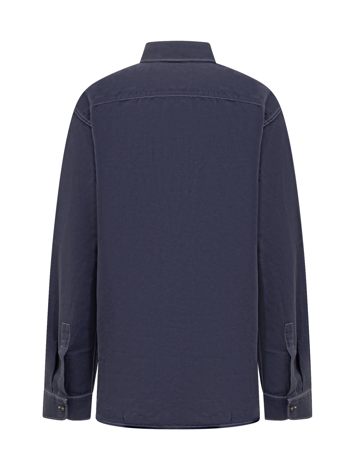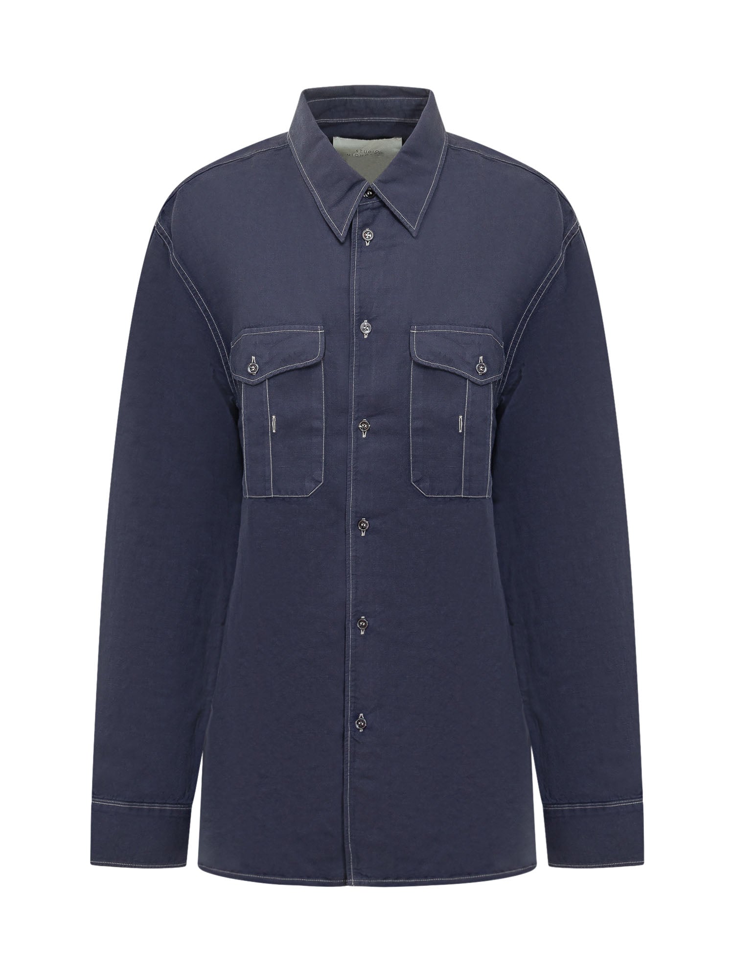 Long-sleeve shirt with classic collar, flap front pockets and button closure