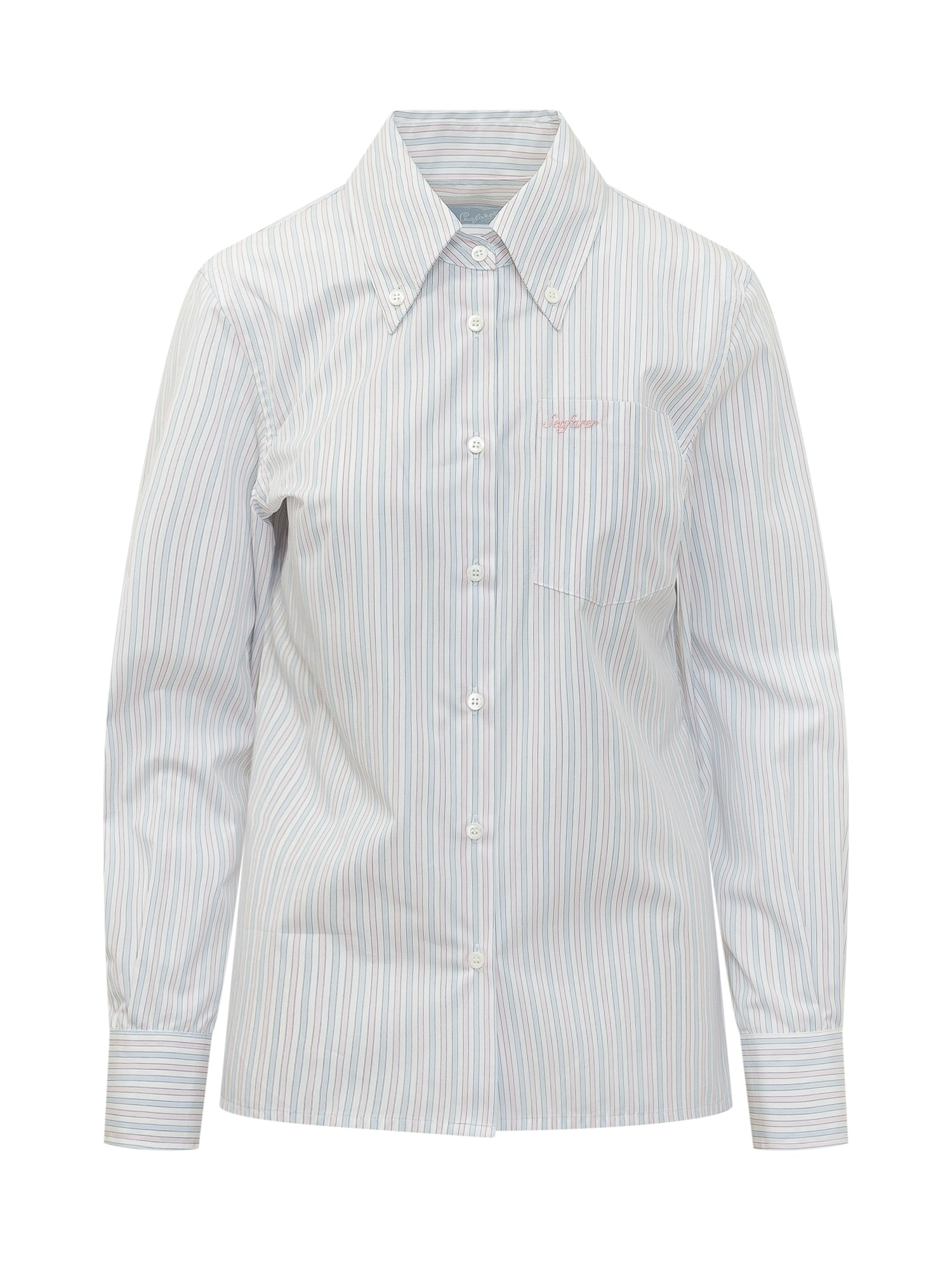Britt long sleeve shirt with classic collar and front button closure. Vertical striped pattern and chest patch pocket with embroidered logo. Straight cut for a refined look.