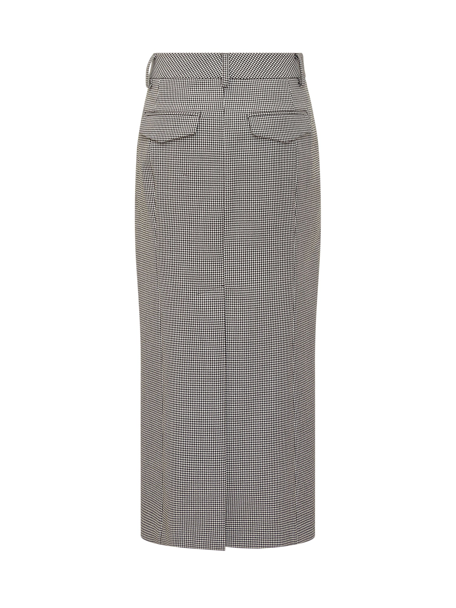 Long skirt with checkered pattern. Closure with zip, hooks and button. Two pockets on the side. Two pockets with flap on the back. Belt loops.