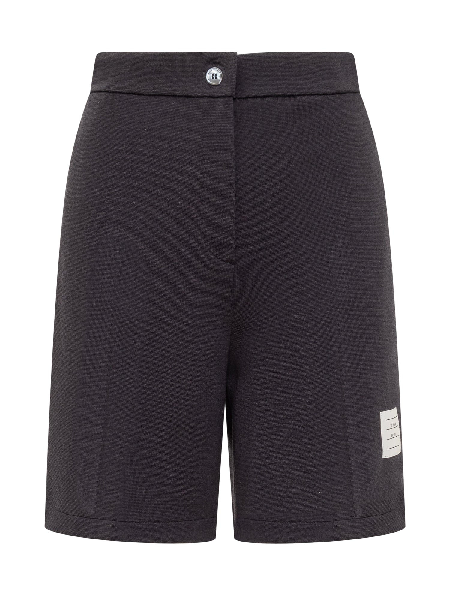 Short pants. High waist. Flush pockets on the sides. Button and zipper closure. Signature striped grosgrain loop tab.