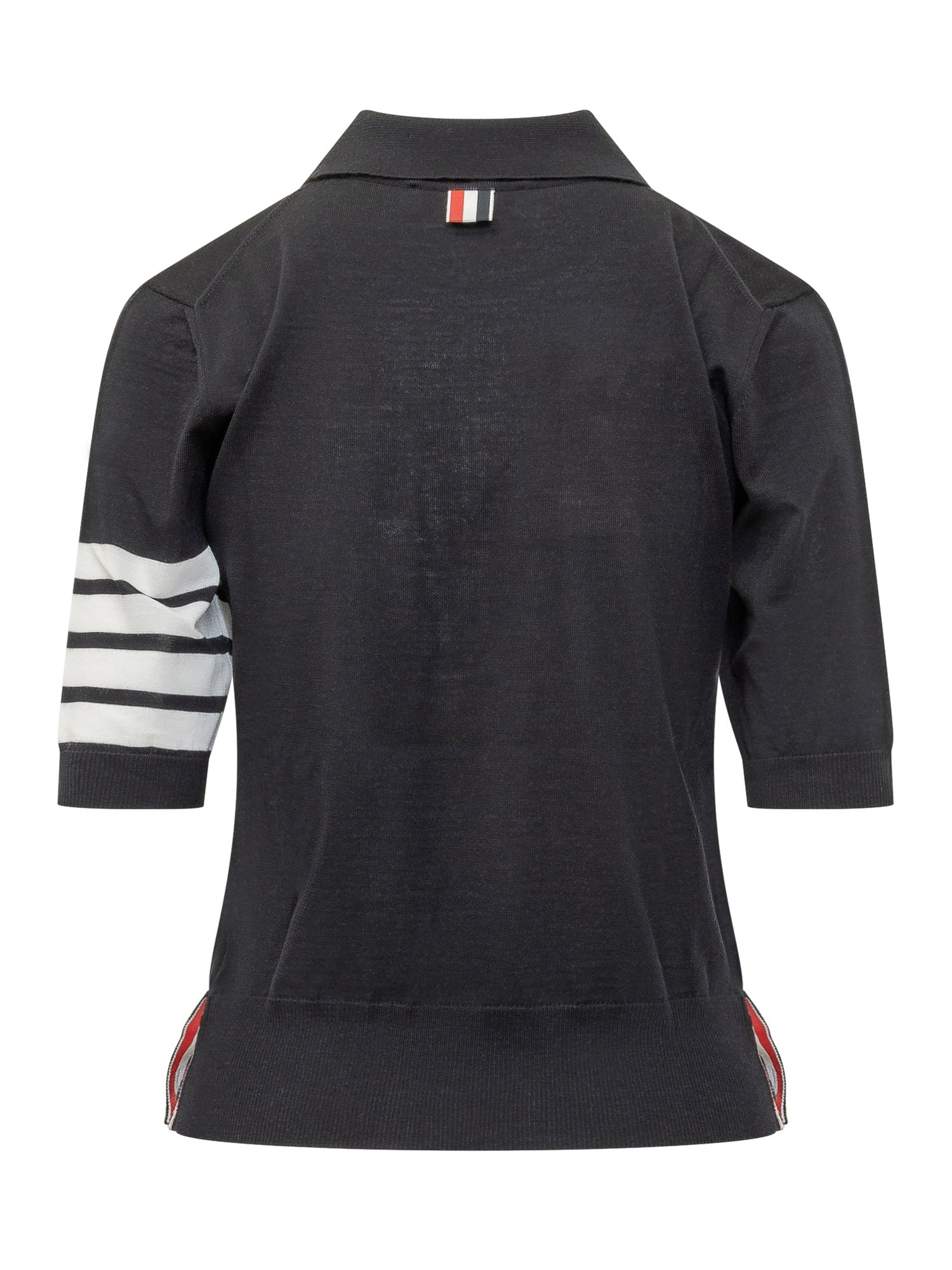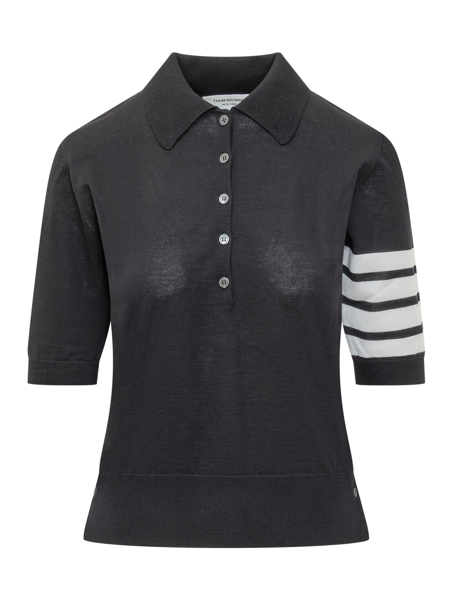 Short-sleeve fine knit polo with a classic collar and front button placket.