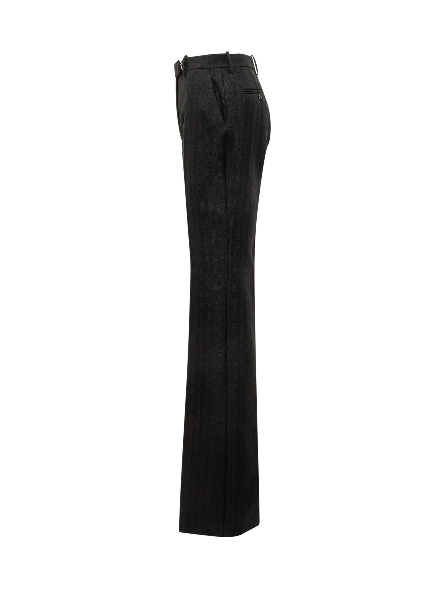 Tom Ford black wool trousers with straight leg and regular waist. Elegant and minimal design with central crease.