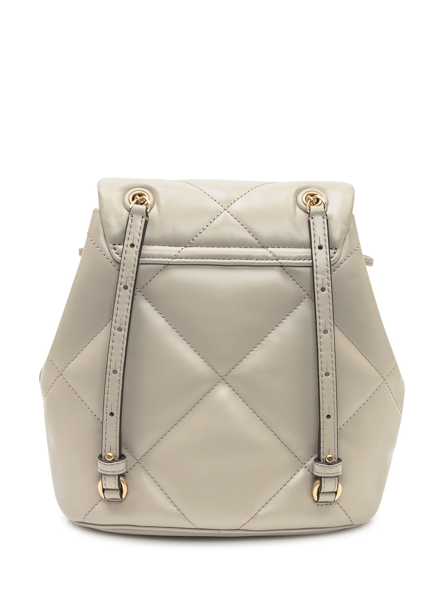 Soft-structured quilted backpack with flap and drawstring closure. Compact yet functional, it features adjustable straps and a roomy interior for everyday use.