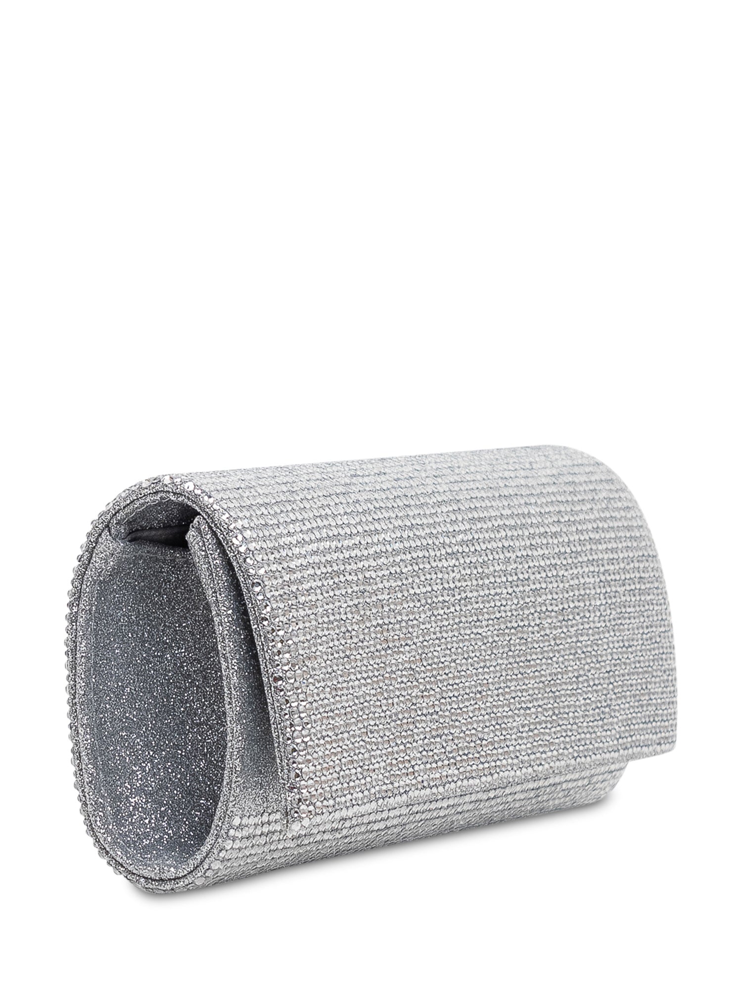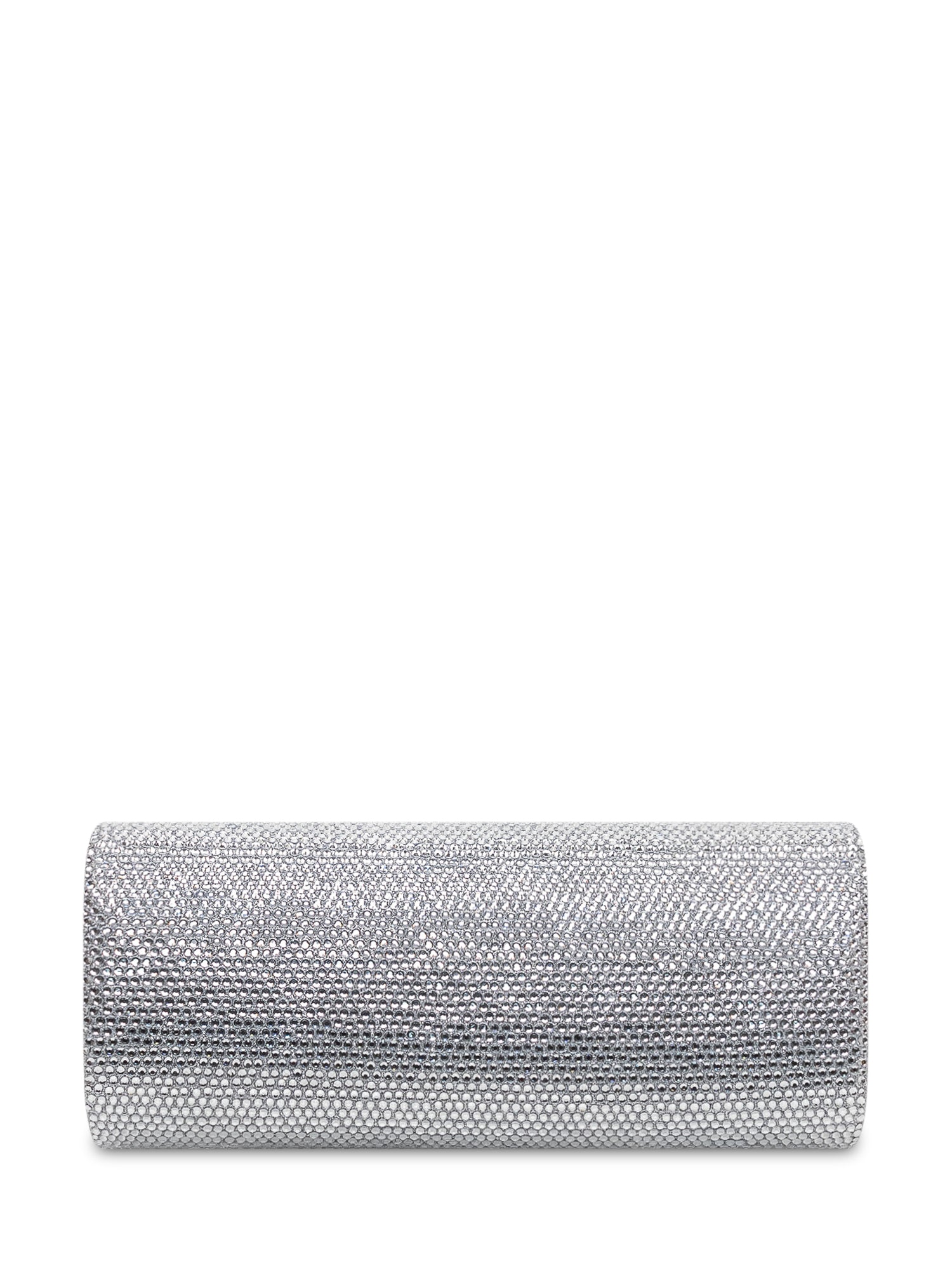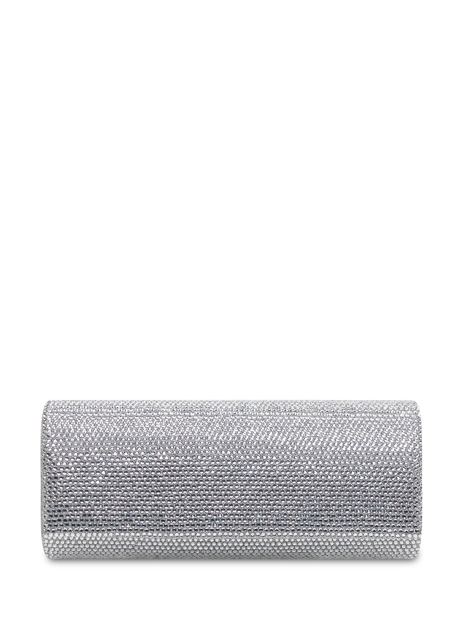 Hard-shell clutch covered in micro rhinestones with a rectangular silhouette, flap snap closure and a compact interior for essentials.Size: 8.66x3.54x1.57
