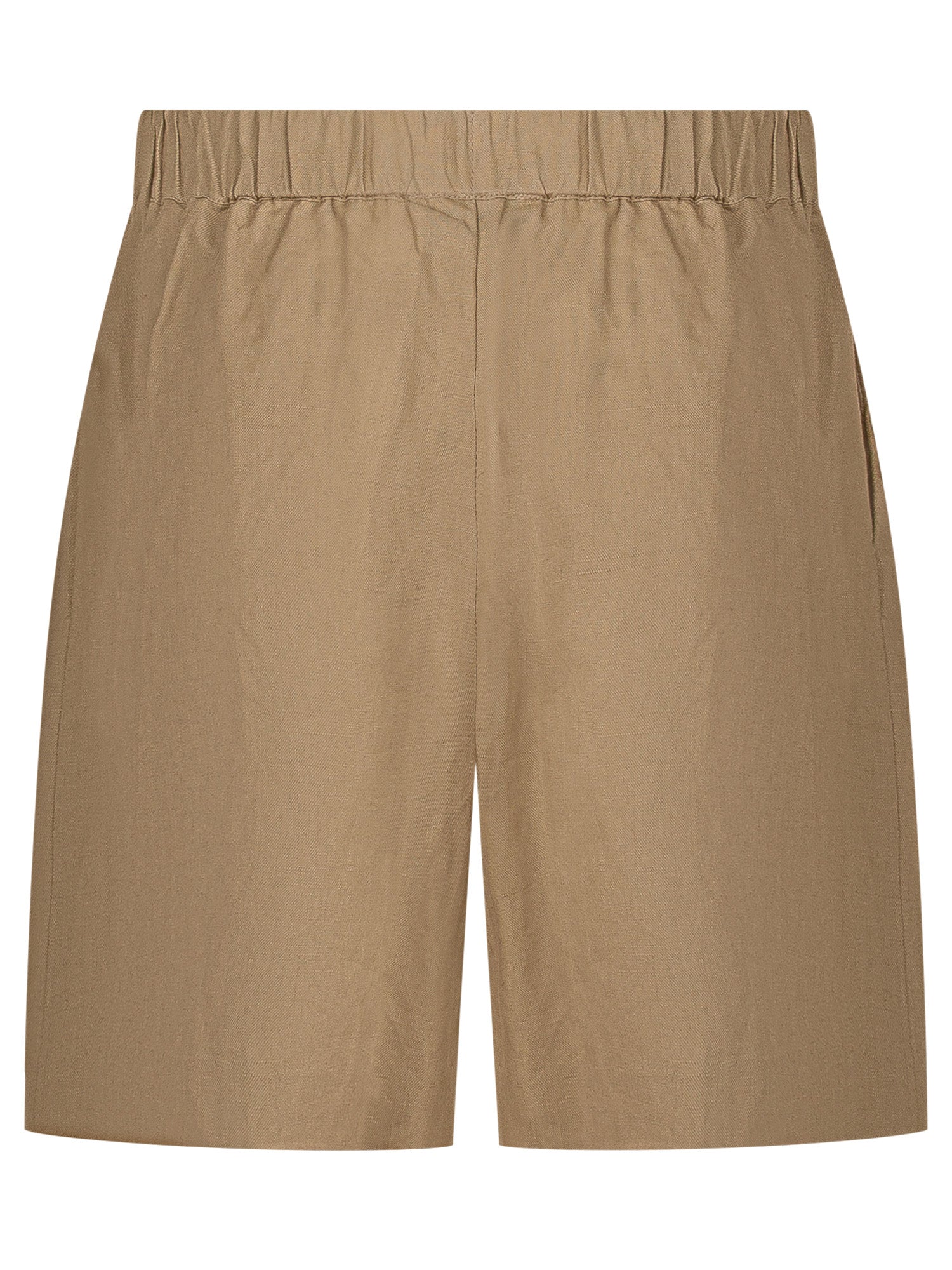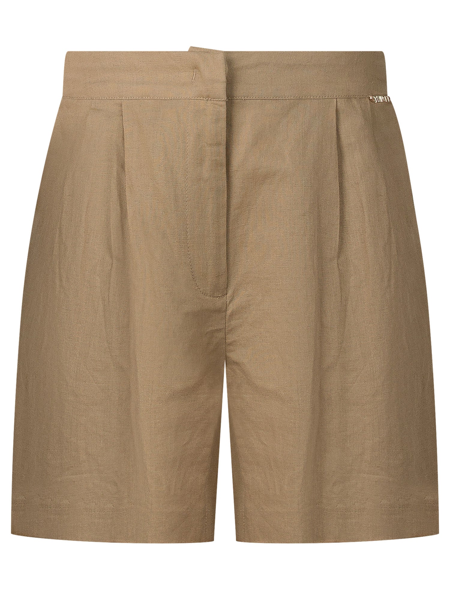 Brown shorts. Closure with zip, hook and button. Side pockets.