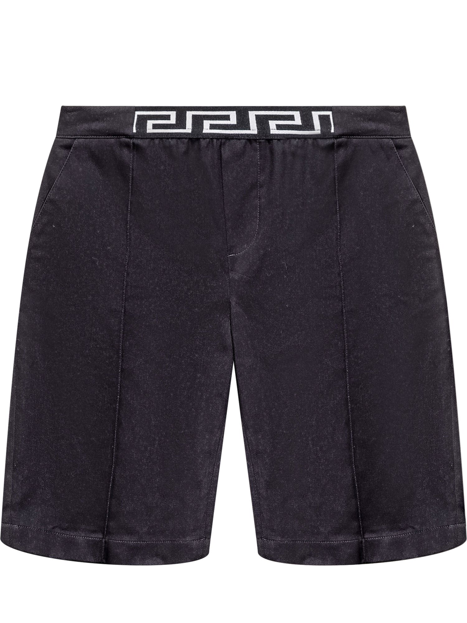 Black shorts. Elastic waistband with Greek pattern. Belt loops. Three pockets.
