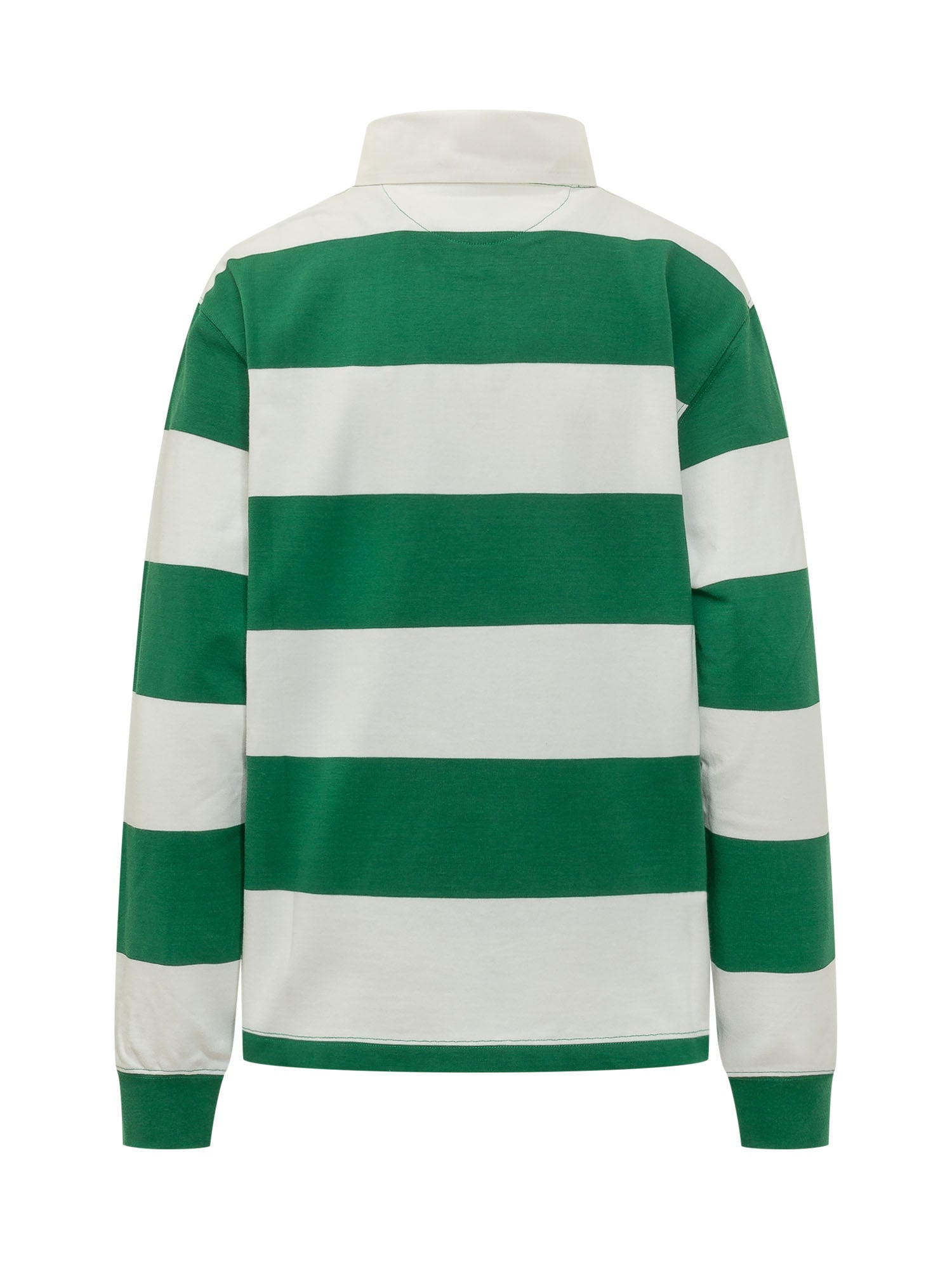 Long-sleeve polo with classic collar and concealed button closure. All over horizontal stripes and embroidered logo on the chest. Regular silhouette with refined details, ideal for casual looks with a sophisticated touch.