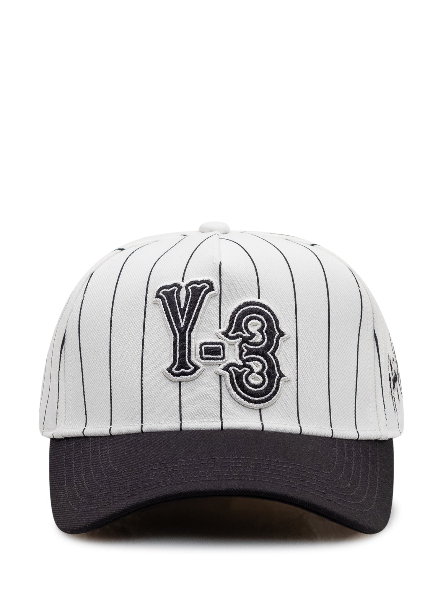 Baseball cap with curved brim and fine pinstripe pattern. Embroidered front logo.