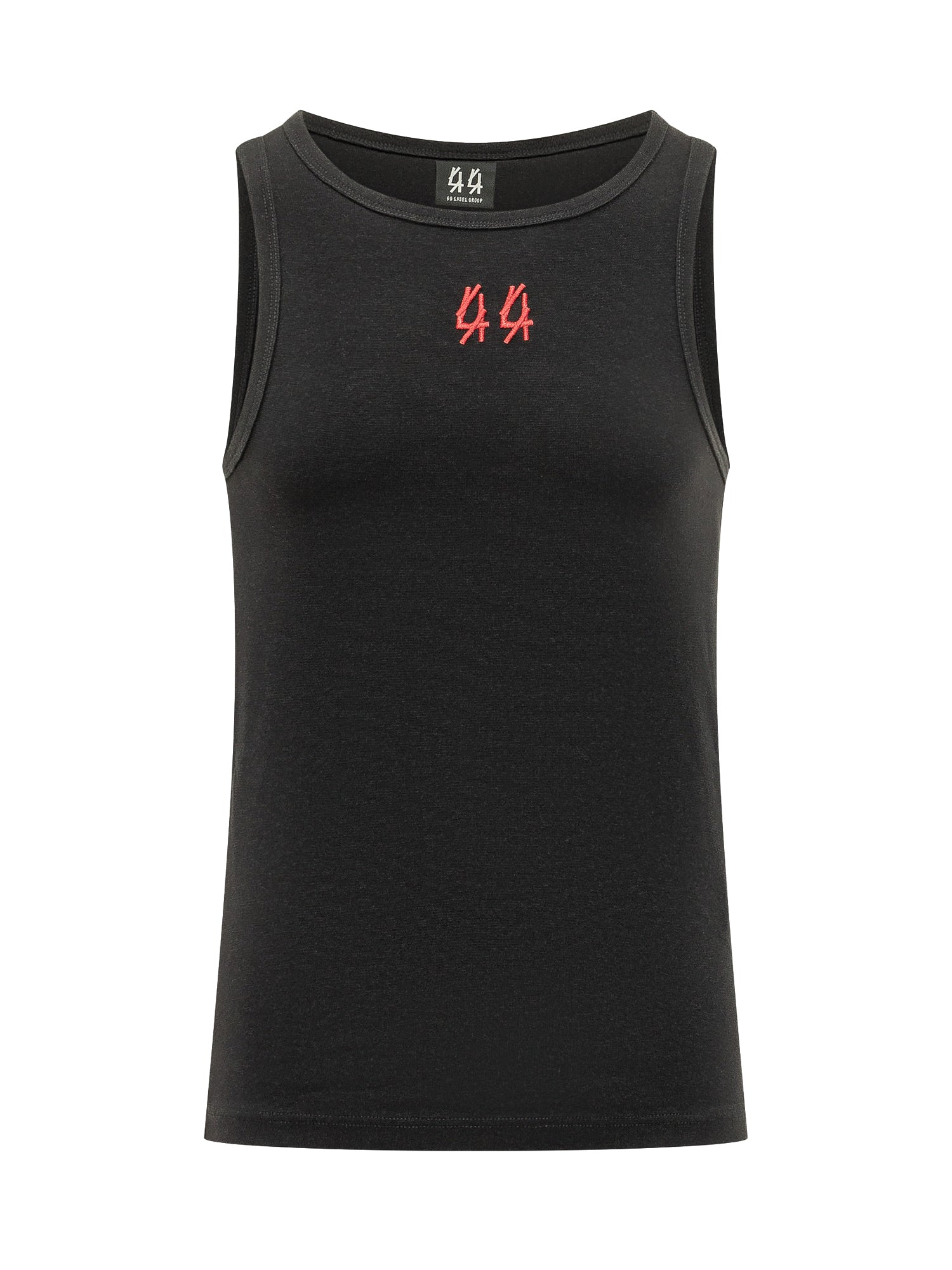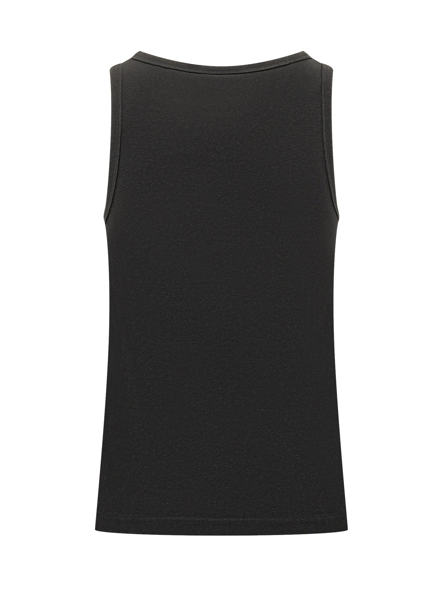 Canotta a costine con scollo rotondo, modello senza maniche con logo sul petto.
