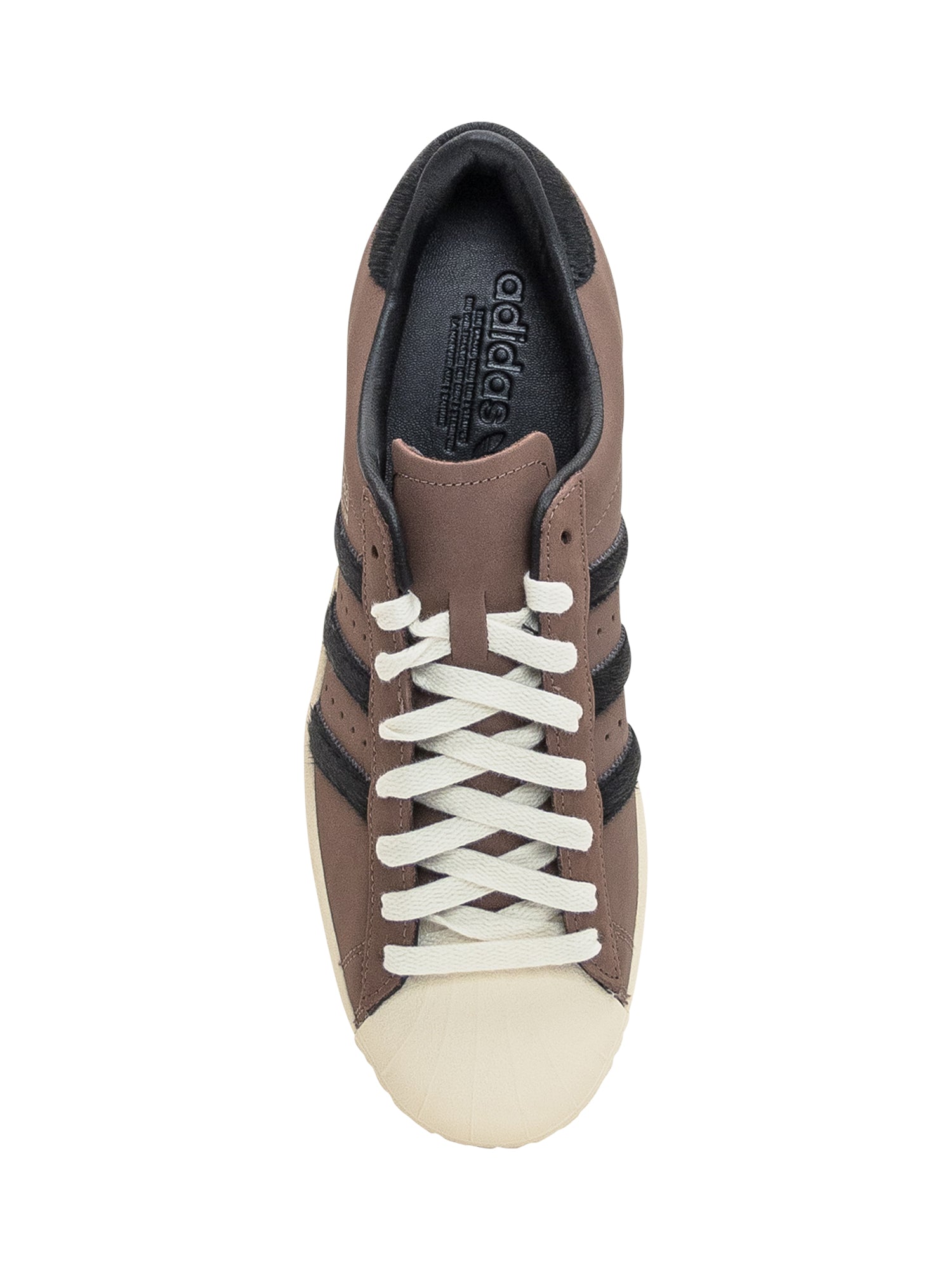 Sneaker marrone con dettagli neri. Chiusura con lacci. Tomaia in nabuk premium. Strisce e dal tallone in cavallino.