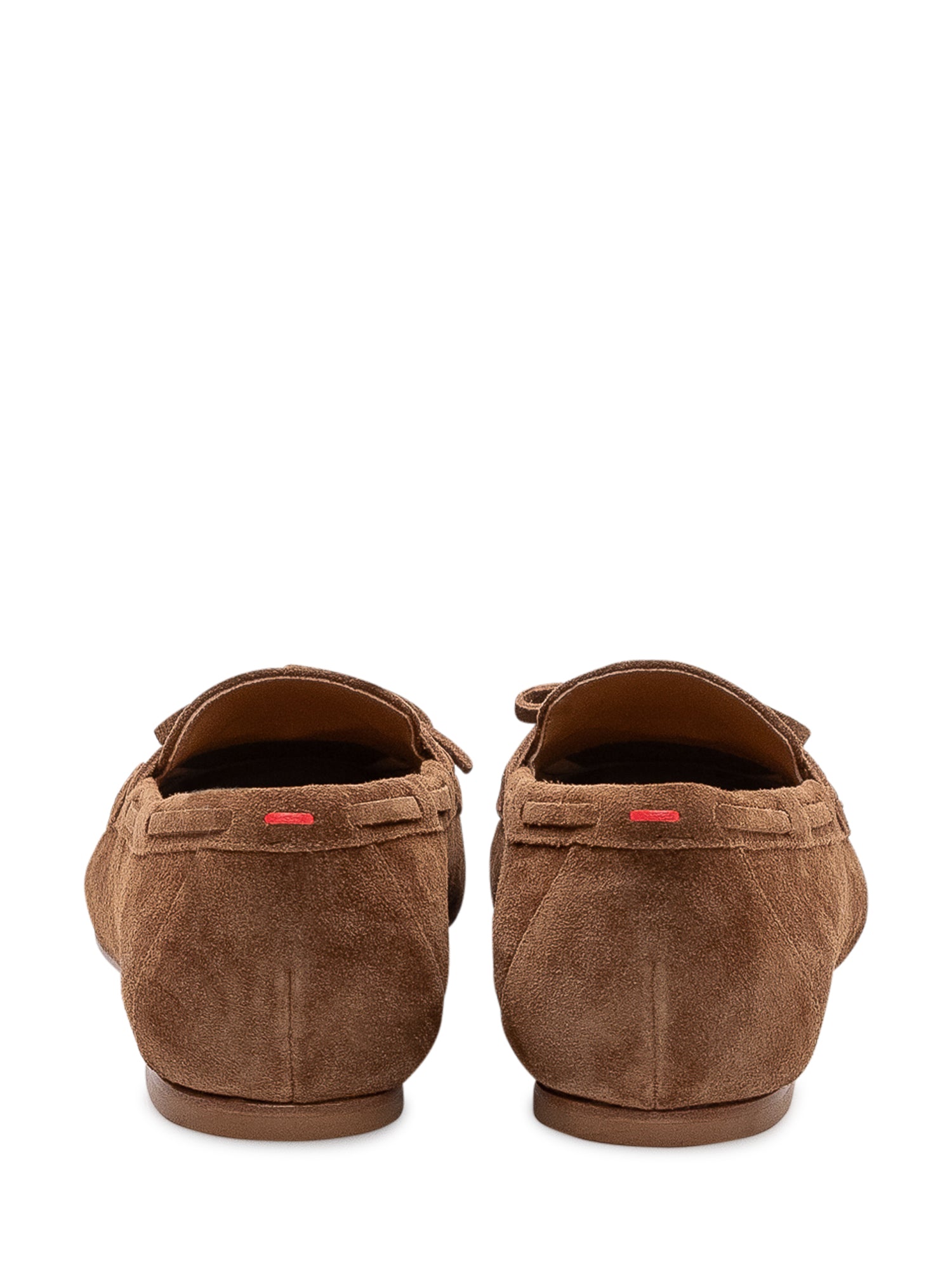 Mocassini con costruzione slip on, dettaglio con laccio sul collo del piede e cuciture visibili