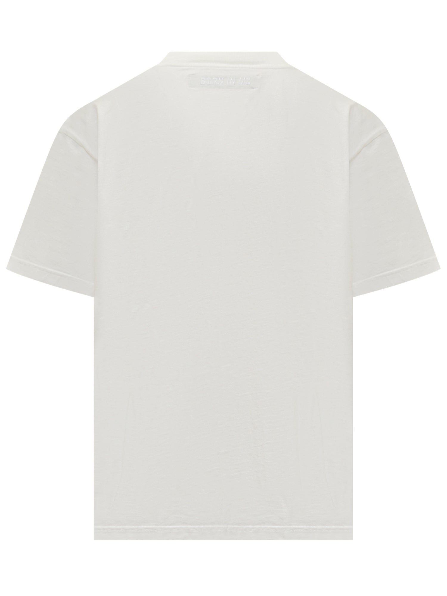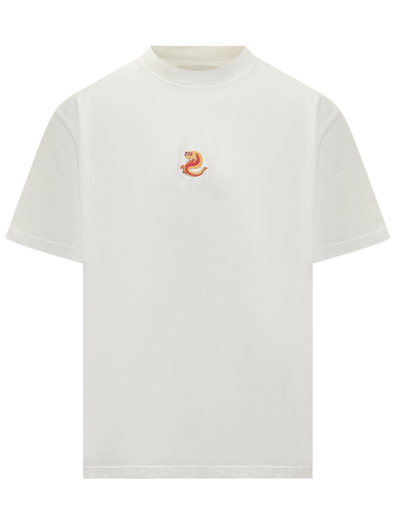 T-shirt Alberto Bresci in cotone bianco con ricamo centrale di drago rosso e oro.