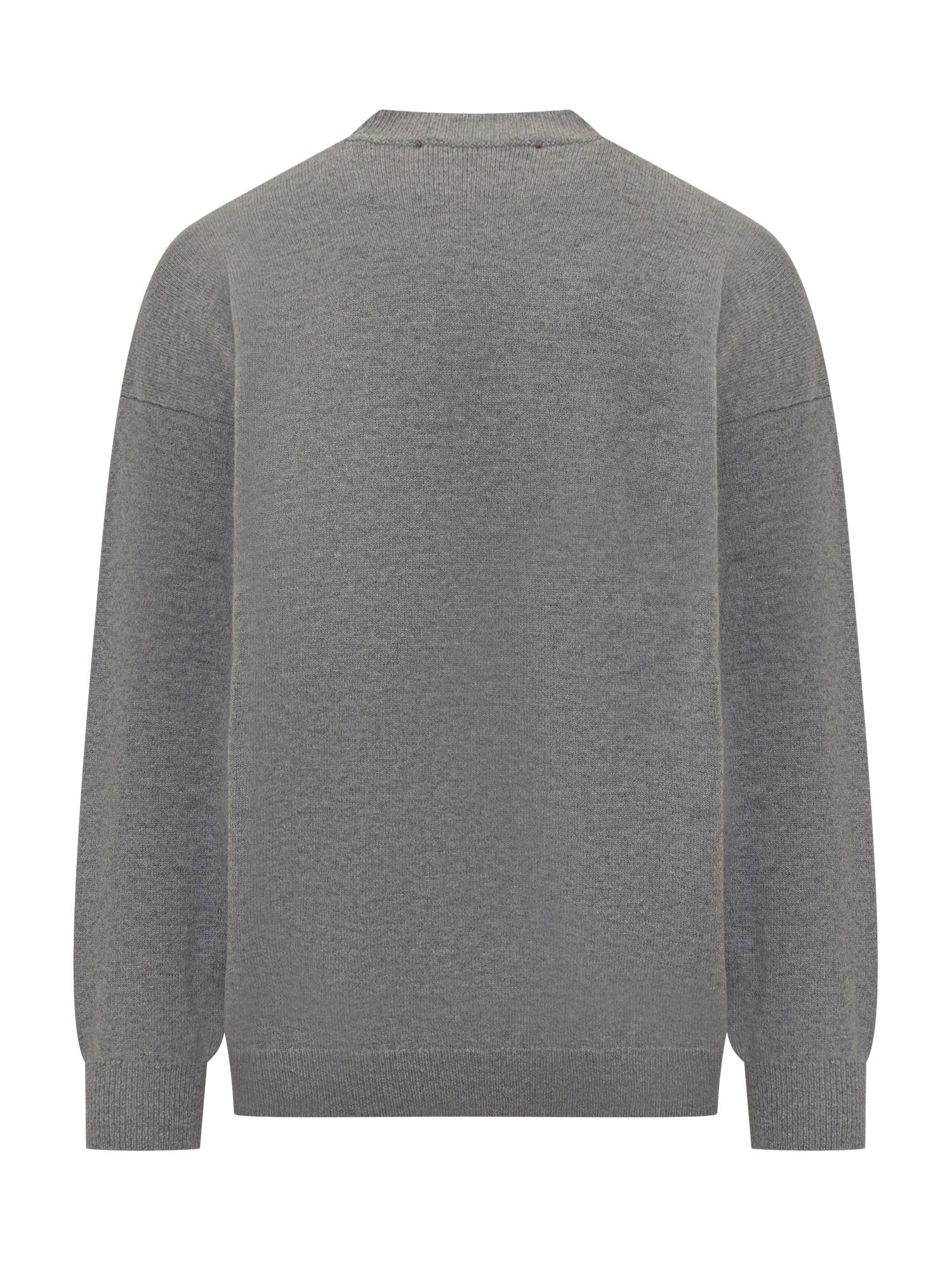 Maglione Amaranto in lana grigia con girocollo e cucitura a X tono su tono.