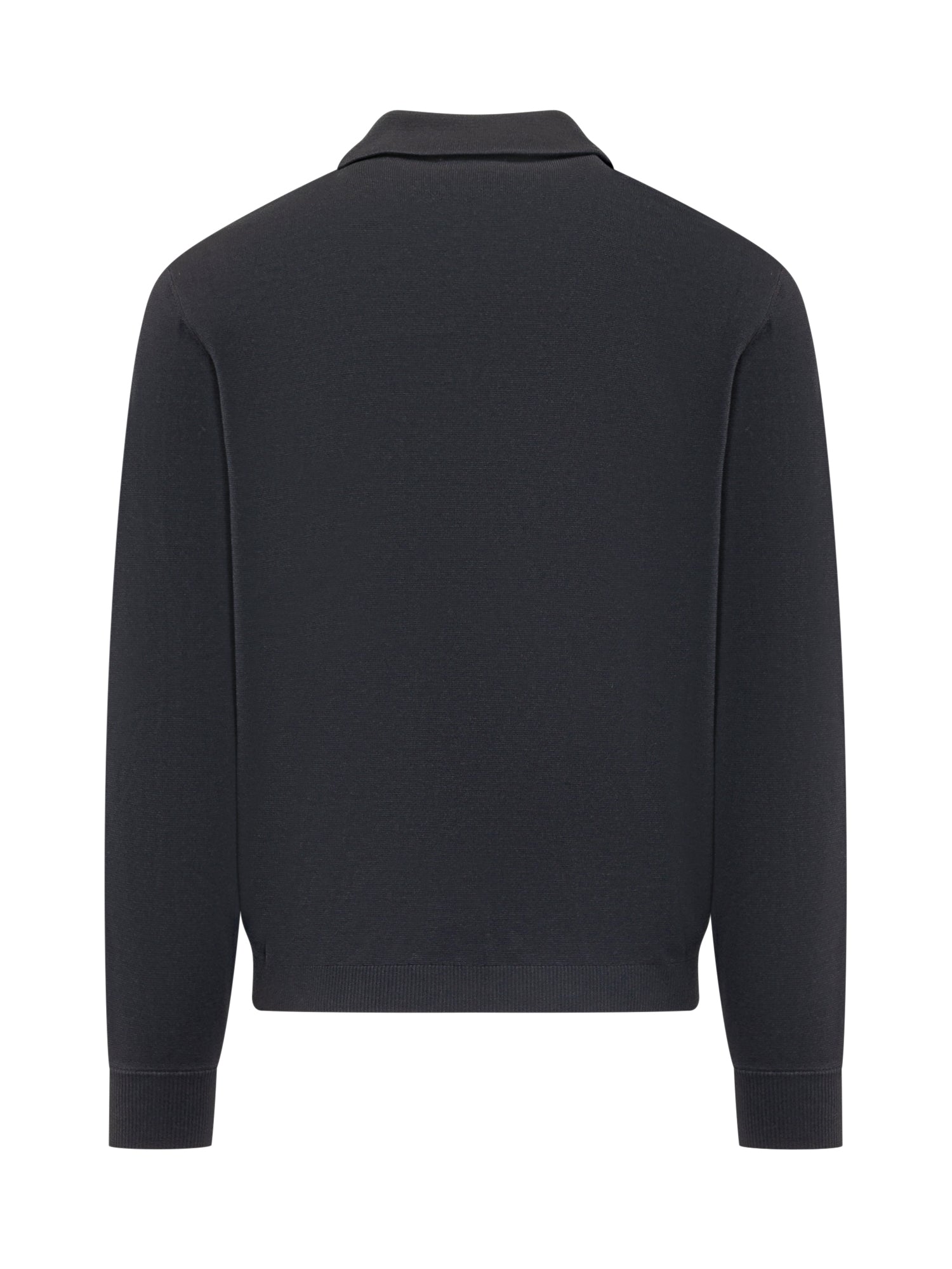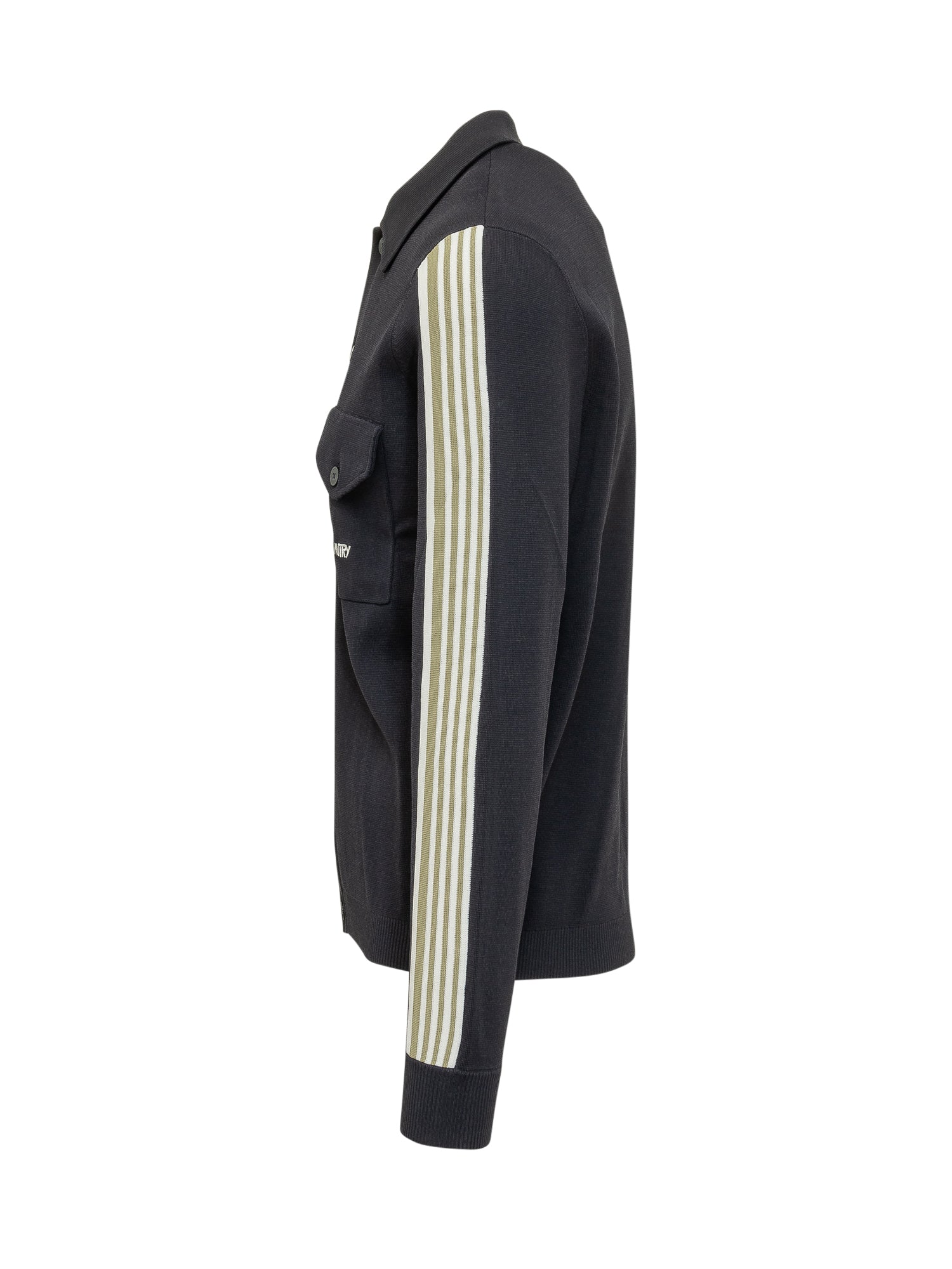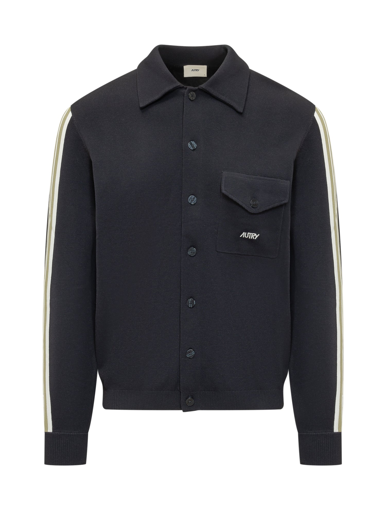 Giacca con colletto classico e chiusura frontale con bottoni. Modello con maniche lunghe e tasca applicata con patta e bottone sul petto, logo frontale visibile e bande laterali sulle maniche, fondo e polsini rifiniti a costine.