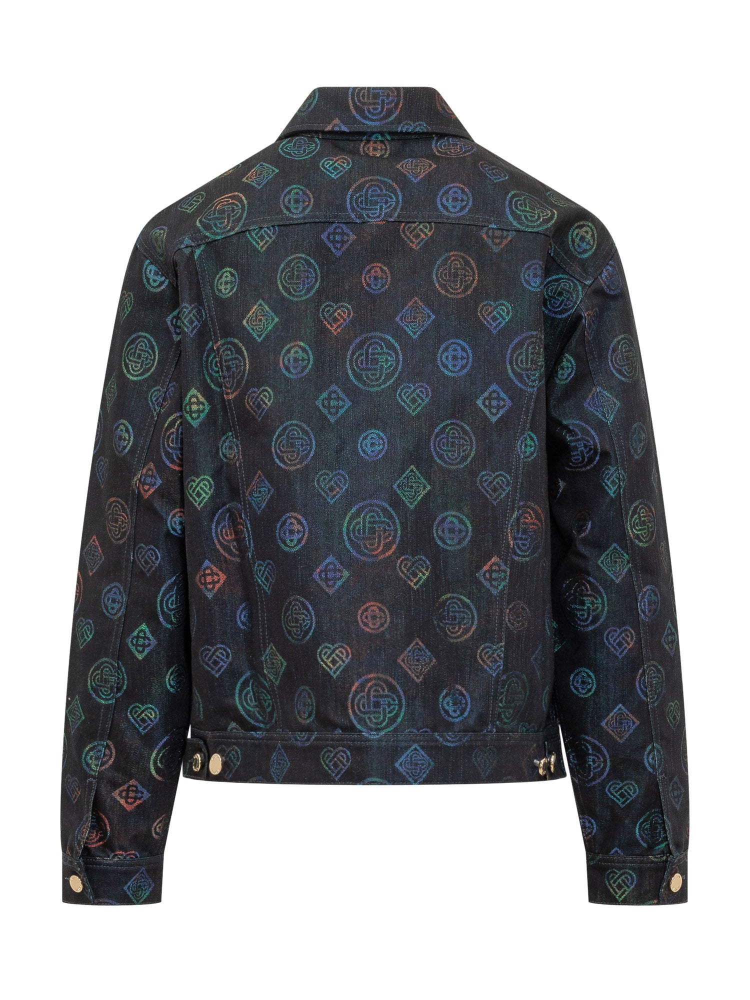 Giacca stile trucker con stampa allover, chiusura con bottoni, due tasche sul petto, polsini con bottoni.