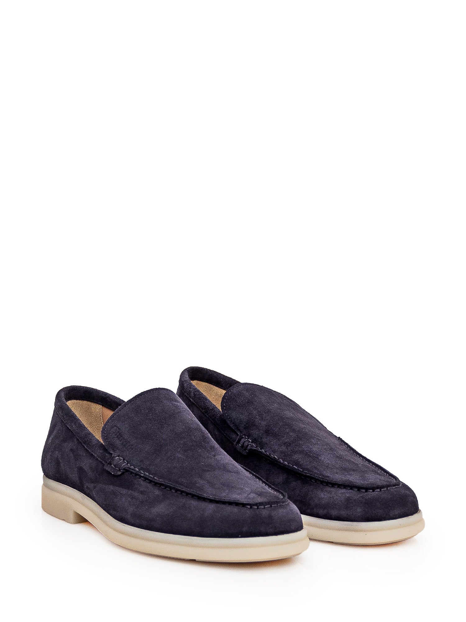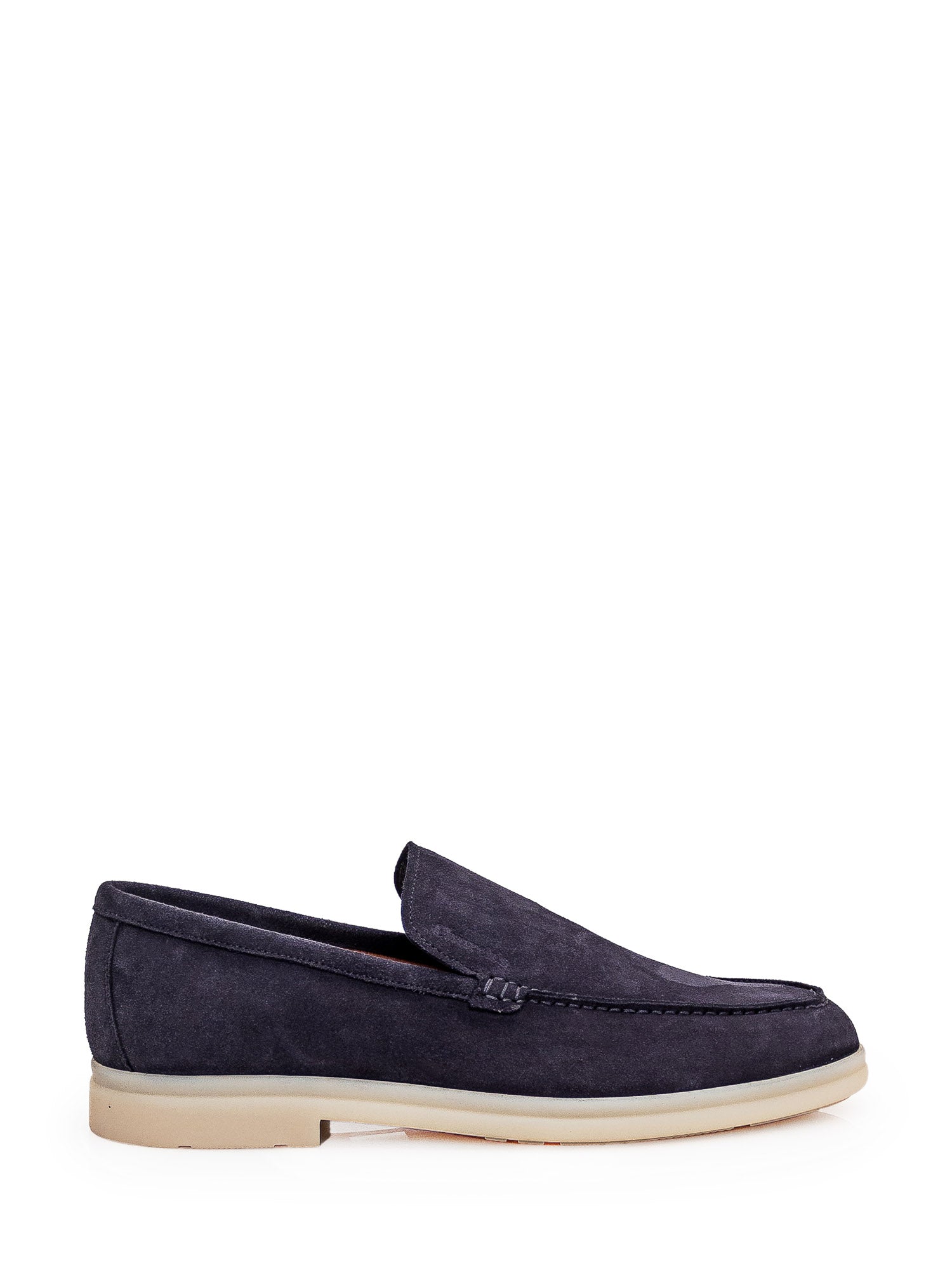 Mocassino blu in pelle scamosciata. Slip-on. Logo dorato sulla suola interna.