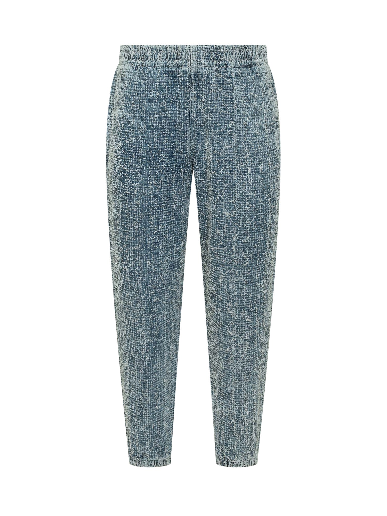 Jeans D-Labb-S in denim dalla texture materica e lavaggio effetto mosso, caratterizzati da vestibilità affusolata e design contemporaneo, con vita elasticizzata, passanti per cintura e chiusura elasticizzata senza zip né bottone.
