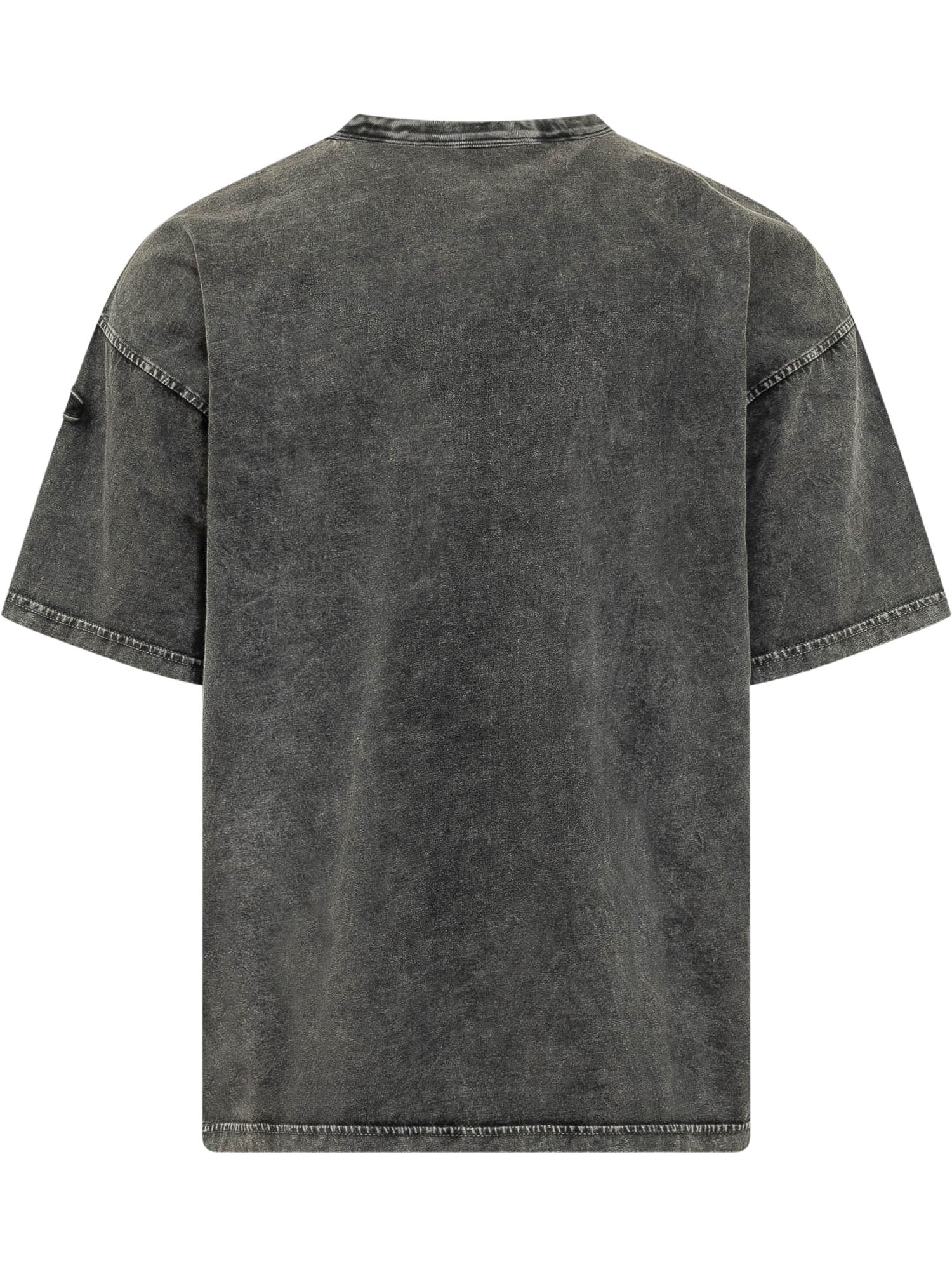 T-shirt Diesel in cotone con vestibilità regular, caratterizzata da trattamento lavato e pannello superiore a contrasto con cuciture decorative.