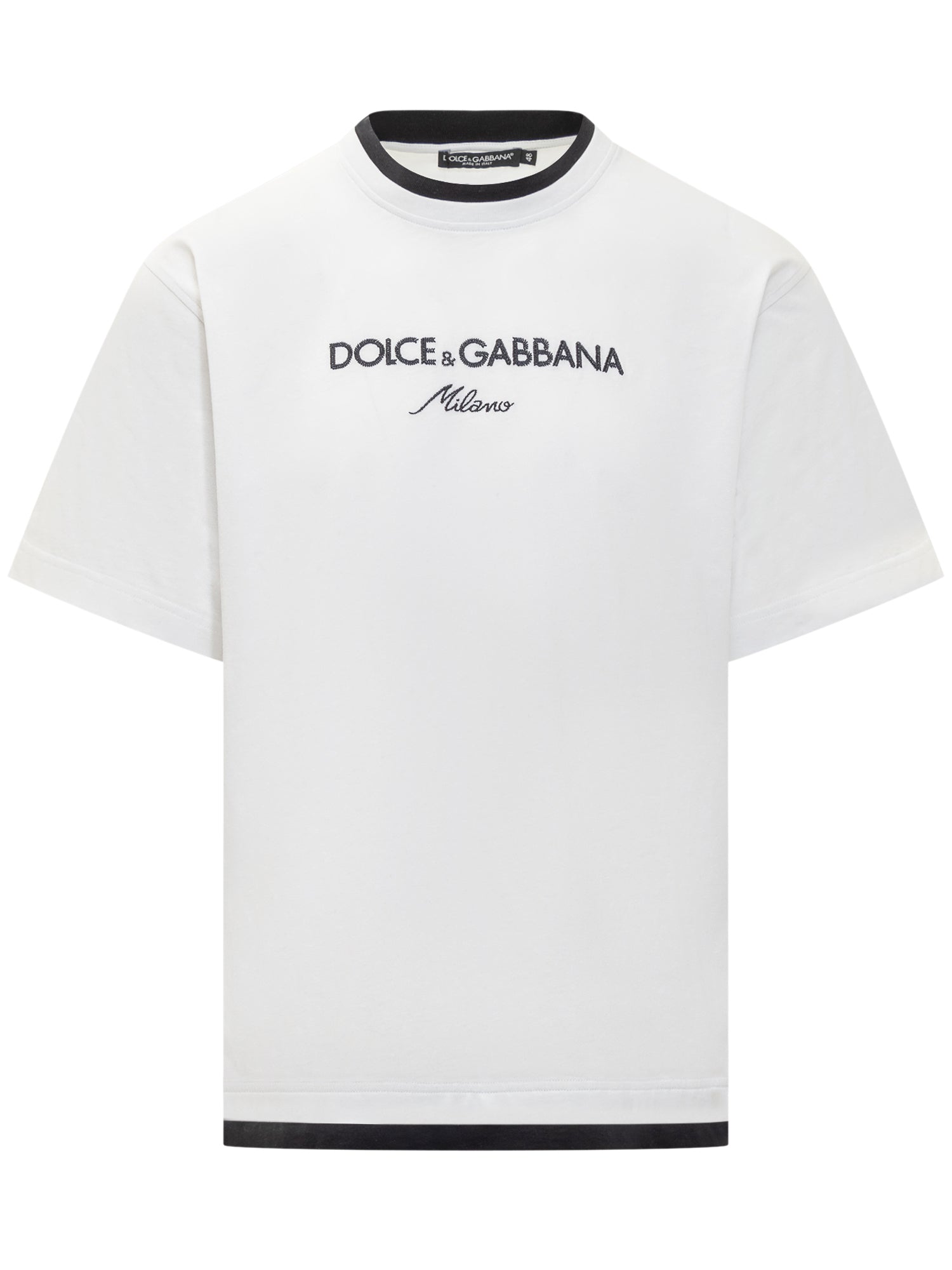 T-shirt bianca Dolce & Gabbana in cotone con profili a contrasto e logo ricamato sul petto.