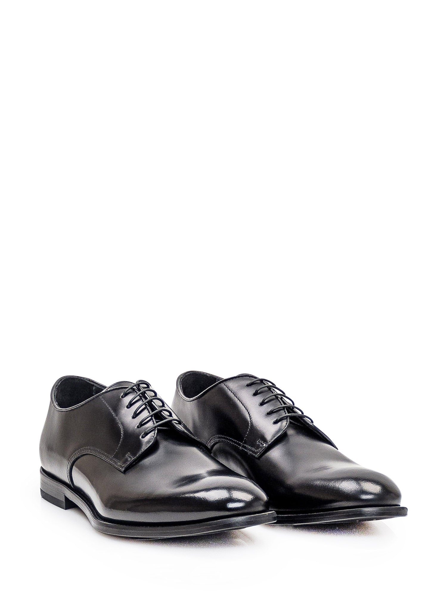 Stringata nera in pelle. Chiusura con lacci. Logo dorato sulla suola interna.