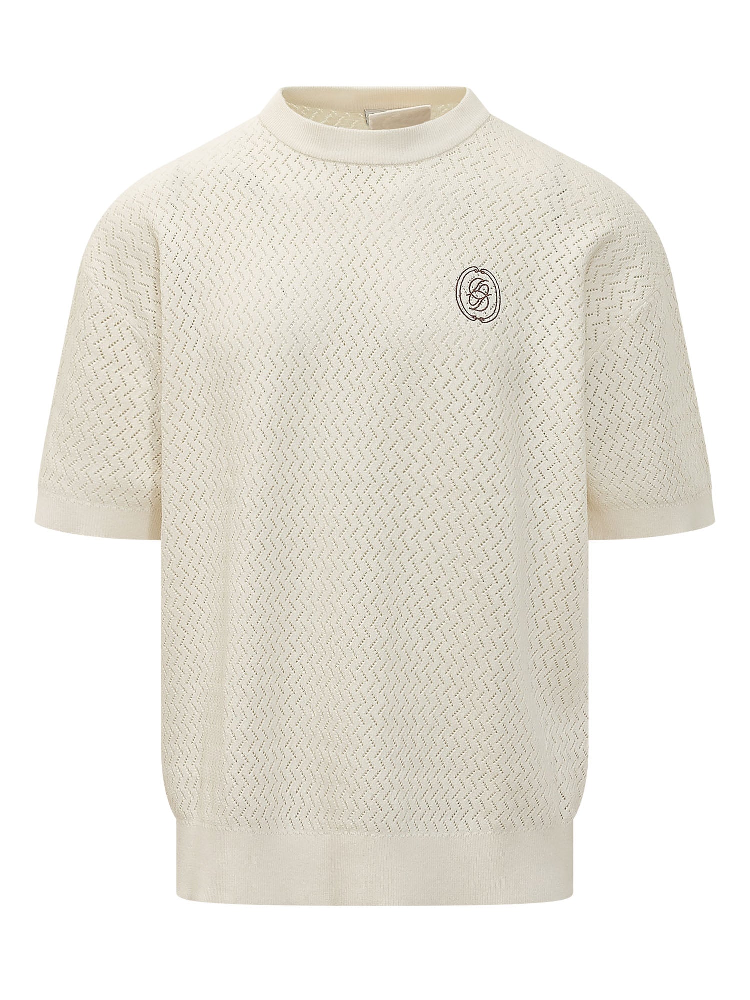 T-shirt in maglia con lavorazione traforata, maniche corte e collo a giro