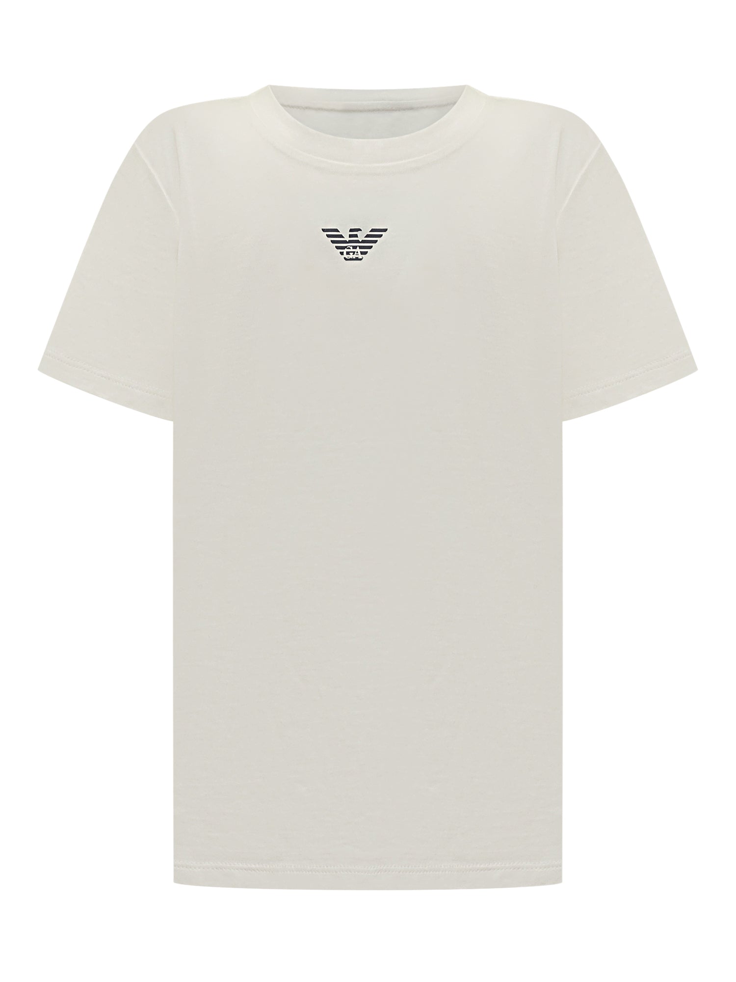 T-shirt Emporio Armani bianca con logo aquila frontale.