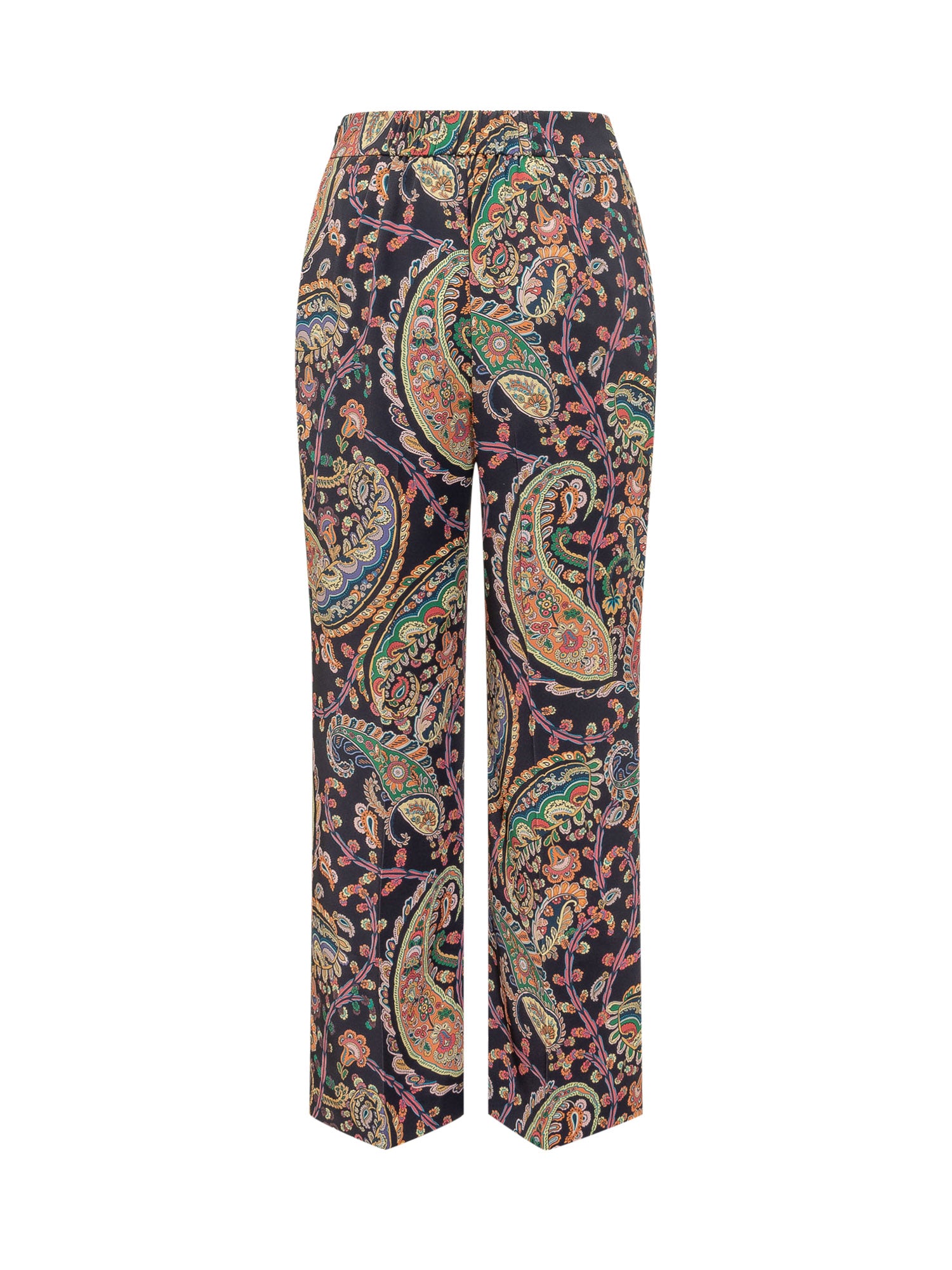 Pantaloni bootcut da donna, vita alta con fascia, stampa paisley, gamba svasata e vestibilita slanciata.