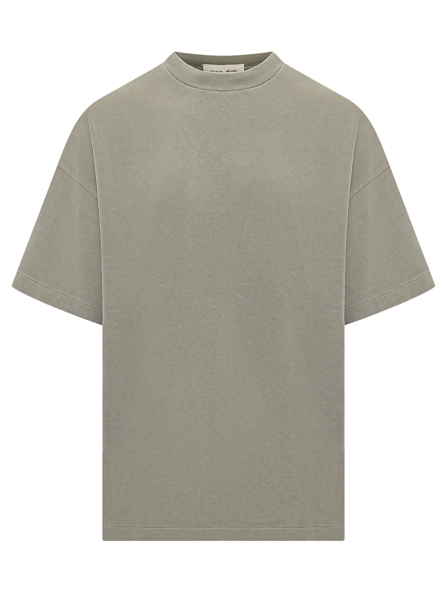 T-shirt a maniche corte con girocollo e logo frontale ricamato