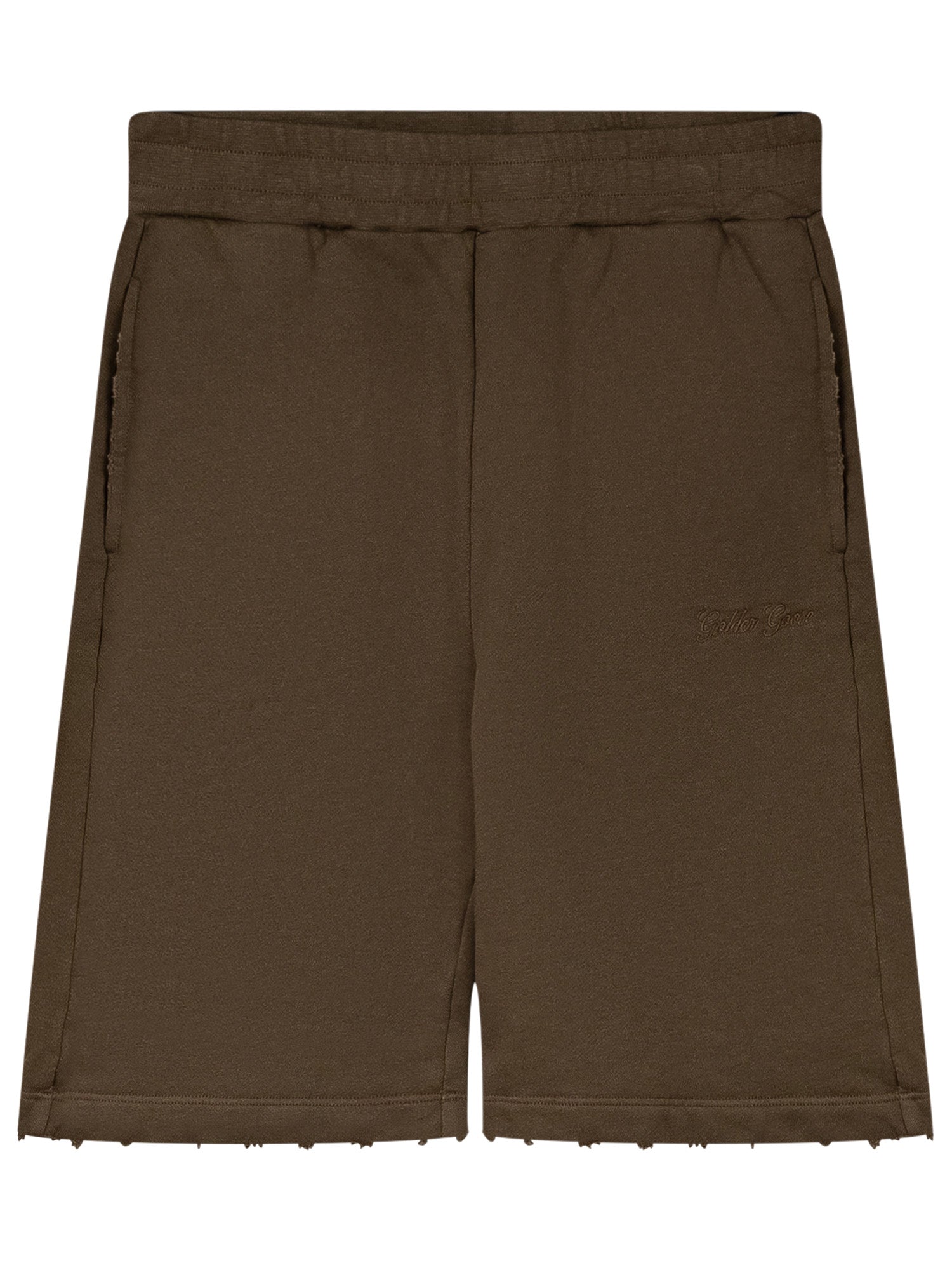 Shorts con vita elasticizzata, tasche laterali e fondo con bordo grezzo effetto consumato