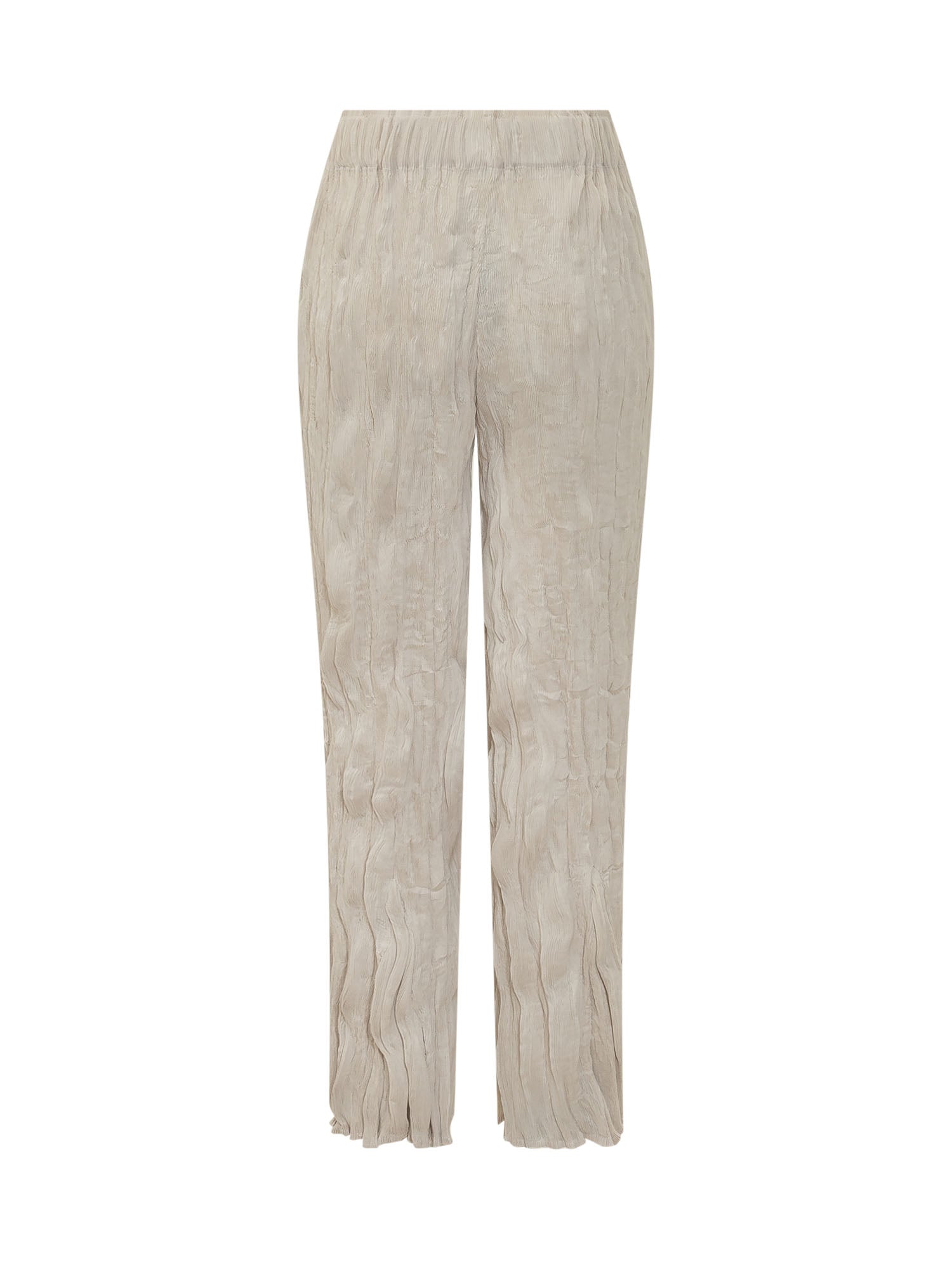 Pantalone con vita elasticizzata e struttura plissettata, gamba dritta e fondo ondulato