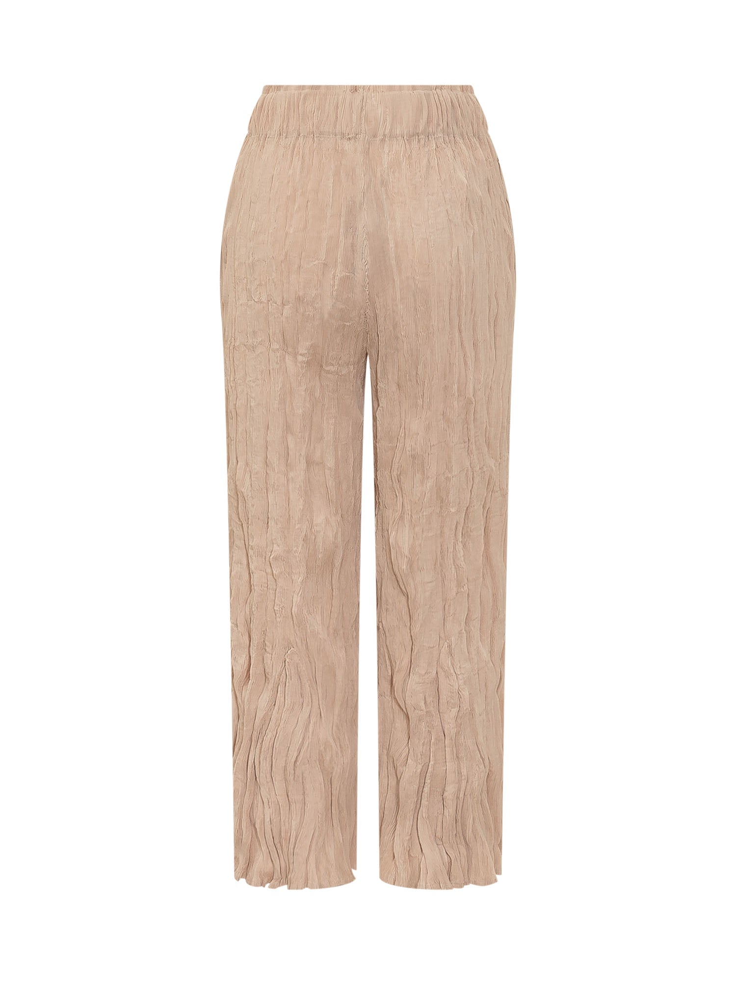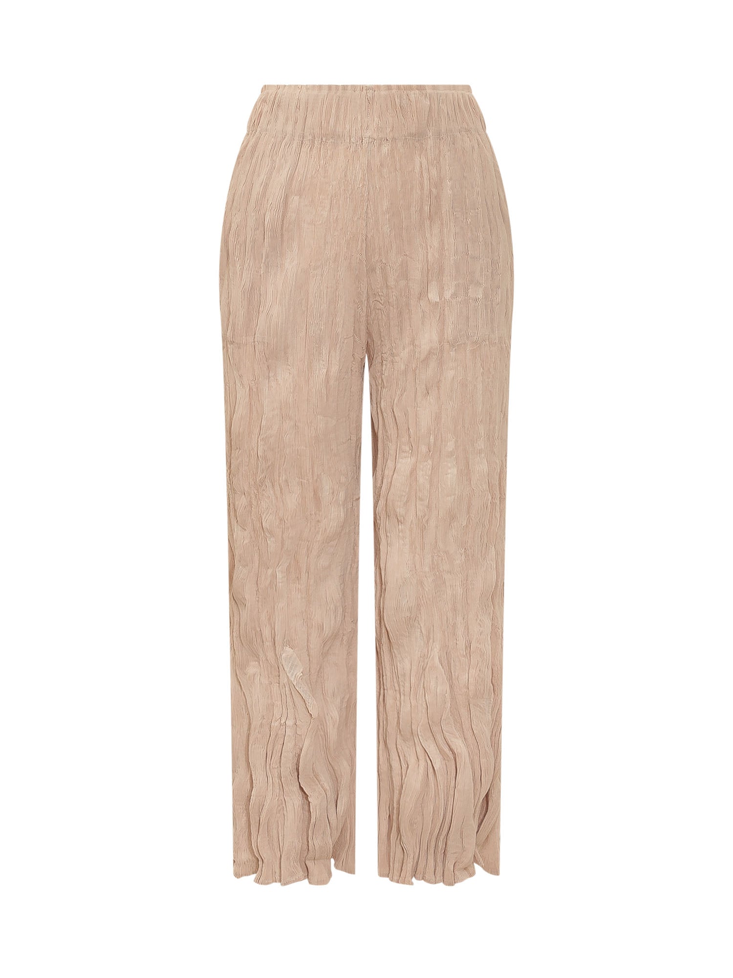 Pantalone con vita elasticizzata e struttura plissettata, gamba dritta e fondo ondulato