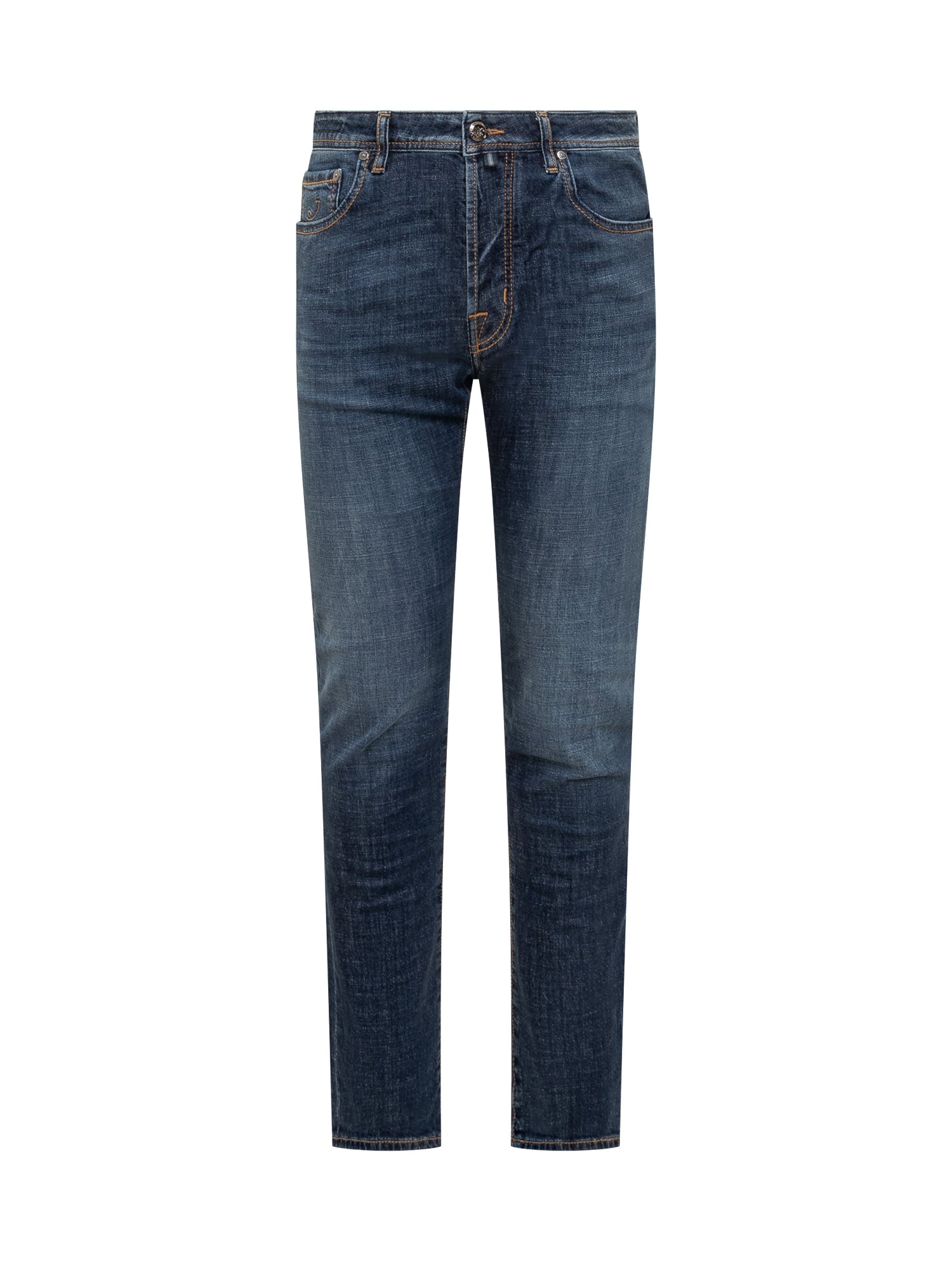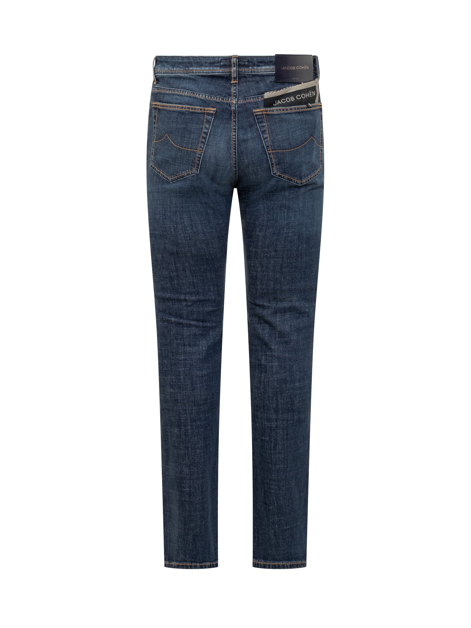 Jeans Jacob Cohen Bard 5 tasche in denim blu delavé. Slim fit, chiusura con zip e bottone.