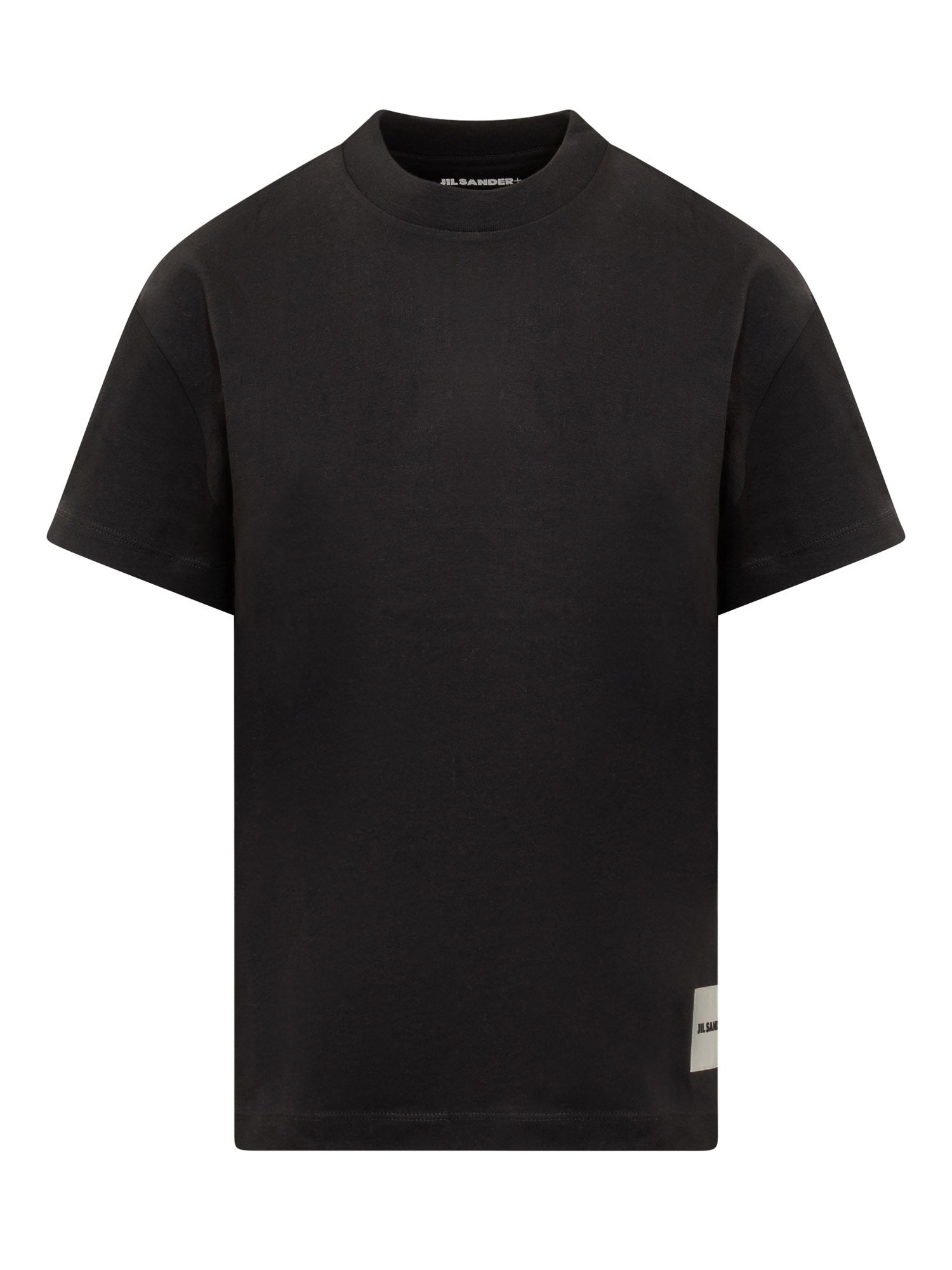 Tre t-shirt con targhetta logo ricamata sul fondo. Girocollo. Collo a costine.
