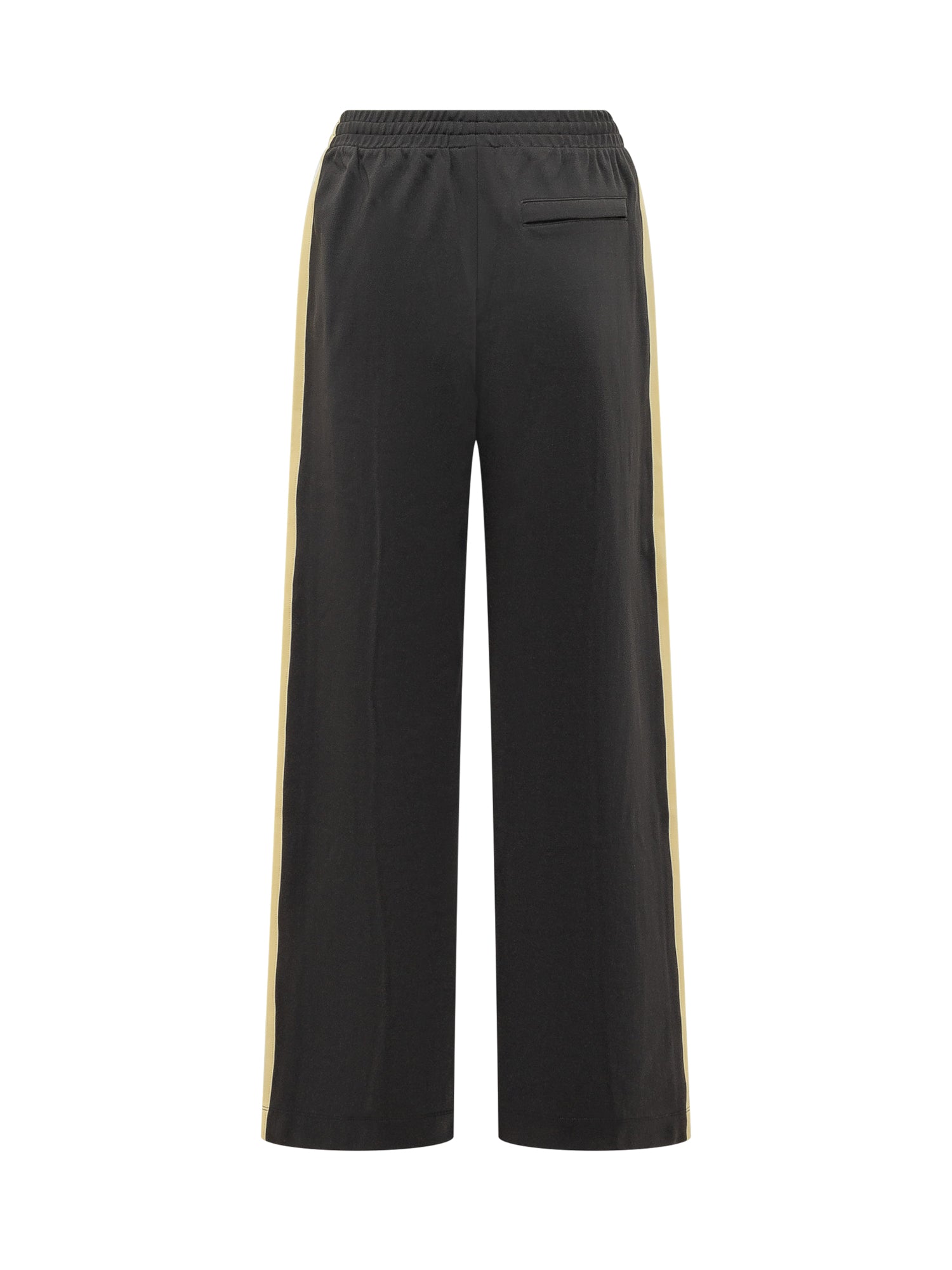 Pantaloni track neri a gamba ampia con bande laterali a contrasto e vita elasticizzata per il massimo comfort. Un essenziale sporty-chic, perfetto con sneakers o blazer per un look più contemporaneo.