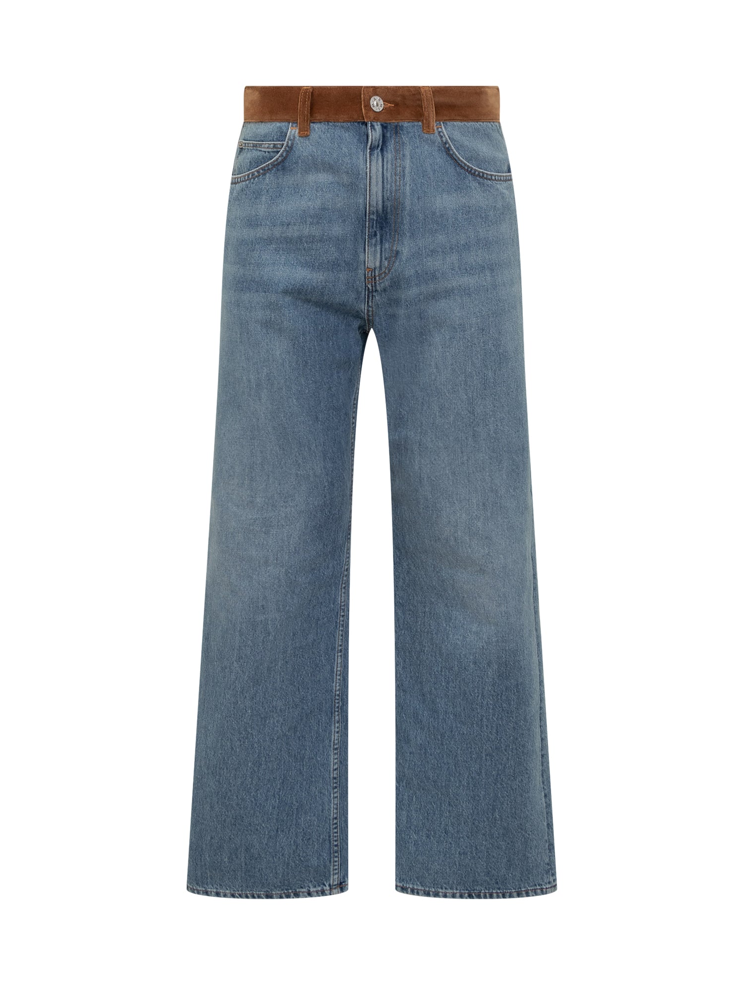 Jeans A Gamba Larga con Dettaglio in Suede Marni