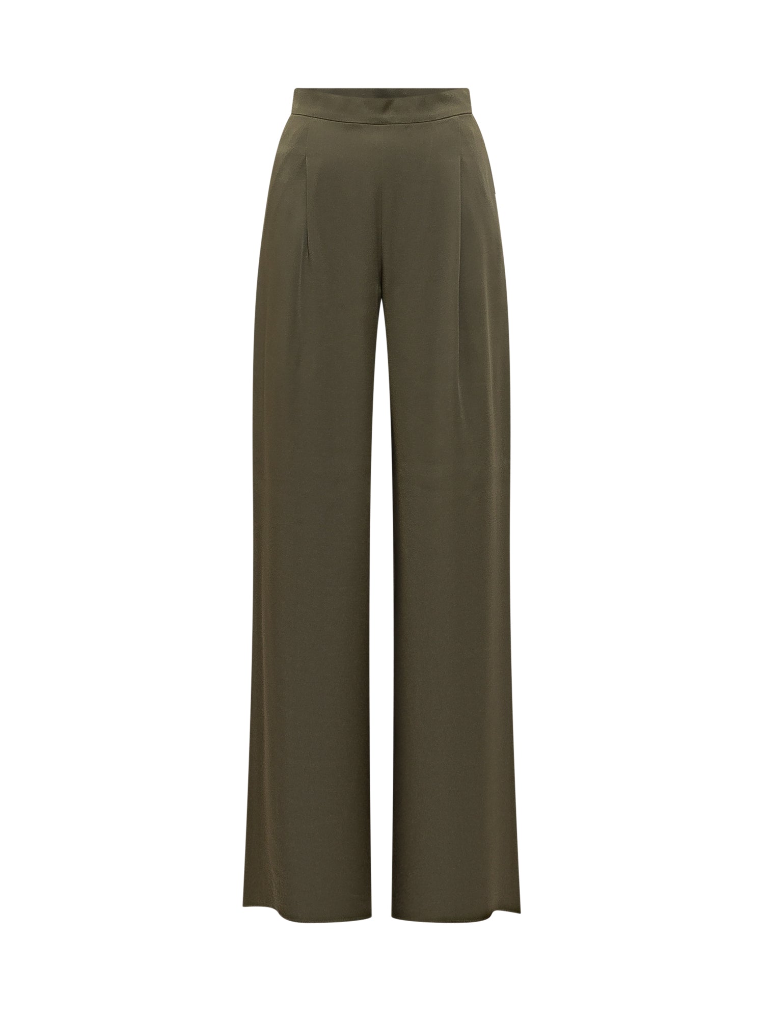 Pantalone a vita alta con fascia liscia, gamba ampia e fluida, linea essenziale e raffinata. Chiusura con zip.